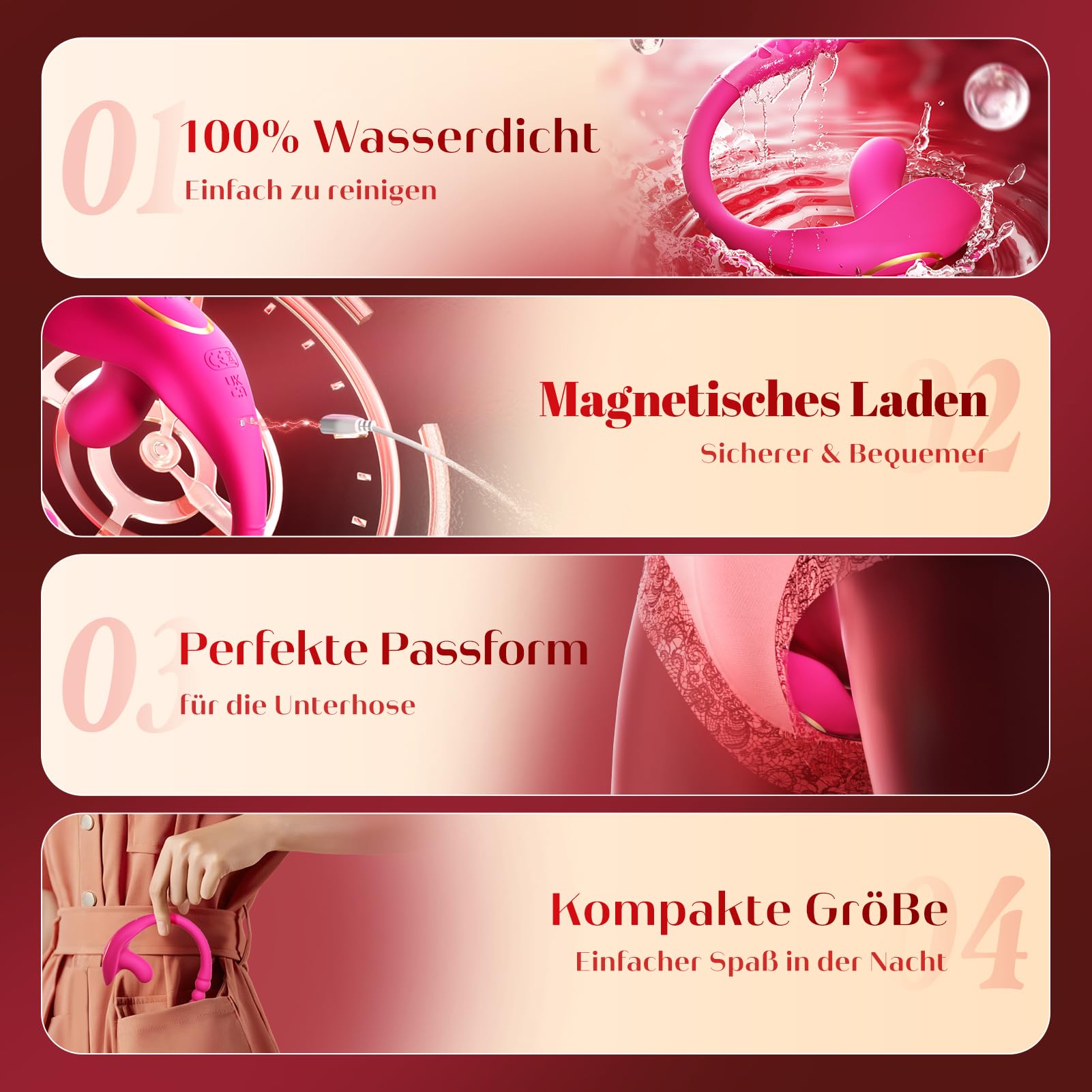 • ????【Einzigartiger 2-in-1 tragbarer Vibrator】 Dieses für einzigartige sexuelle Erfahrungen konzipierte Sex Toys verfügt über ein ergonomisches, gebogenes Design mit fingerähnlichem Einführungsbereich, der mühelos Ihre empfindlichen Stellen findet. Jede erhabene Perle erzeugt wellenartig steigende Lust. Die verbreiterte Basis schmiegt sich sanft an die Unterwäsche an und umschliesst Ihre Vulva für verstärktes Vergnügen und Komfort. Diese innovativen Vibratoren bieten beim Tragen intensive klitorale, vaginale und anale Stimulation und lassen sich mühelos verwandeln - sei es in einen Klitoris-, G-Punkt Vibrator, Paar Sexspielzeug, Analplug oder sogar ein verführerisches Brustwarzenspielzeug