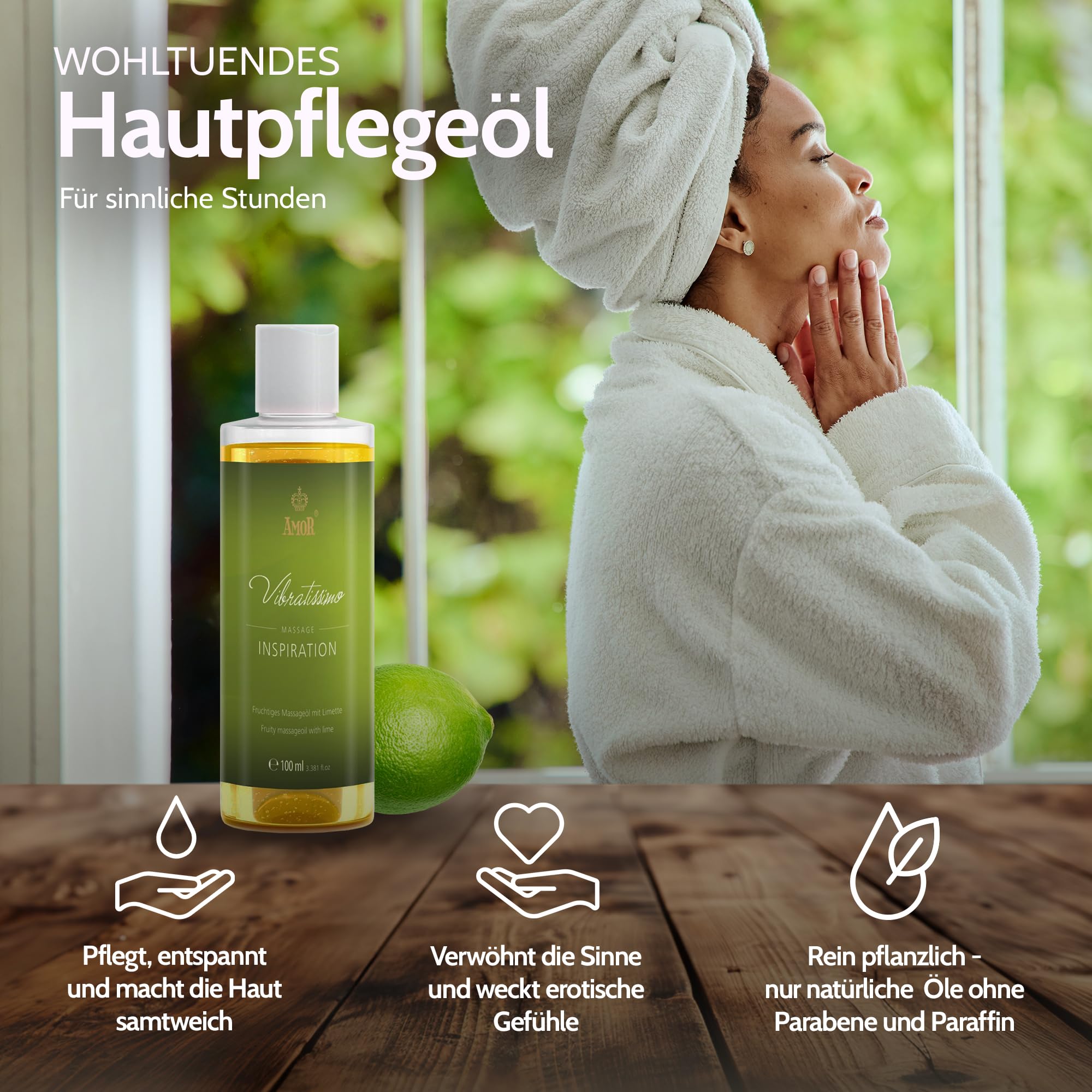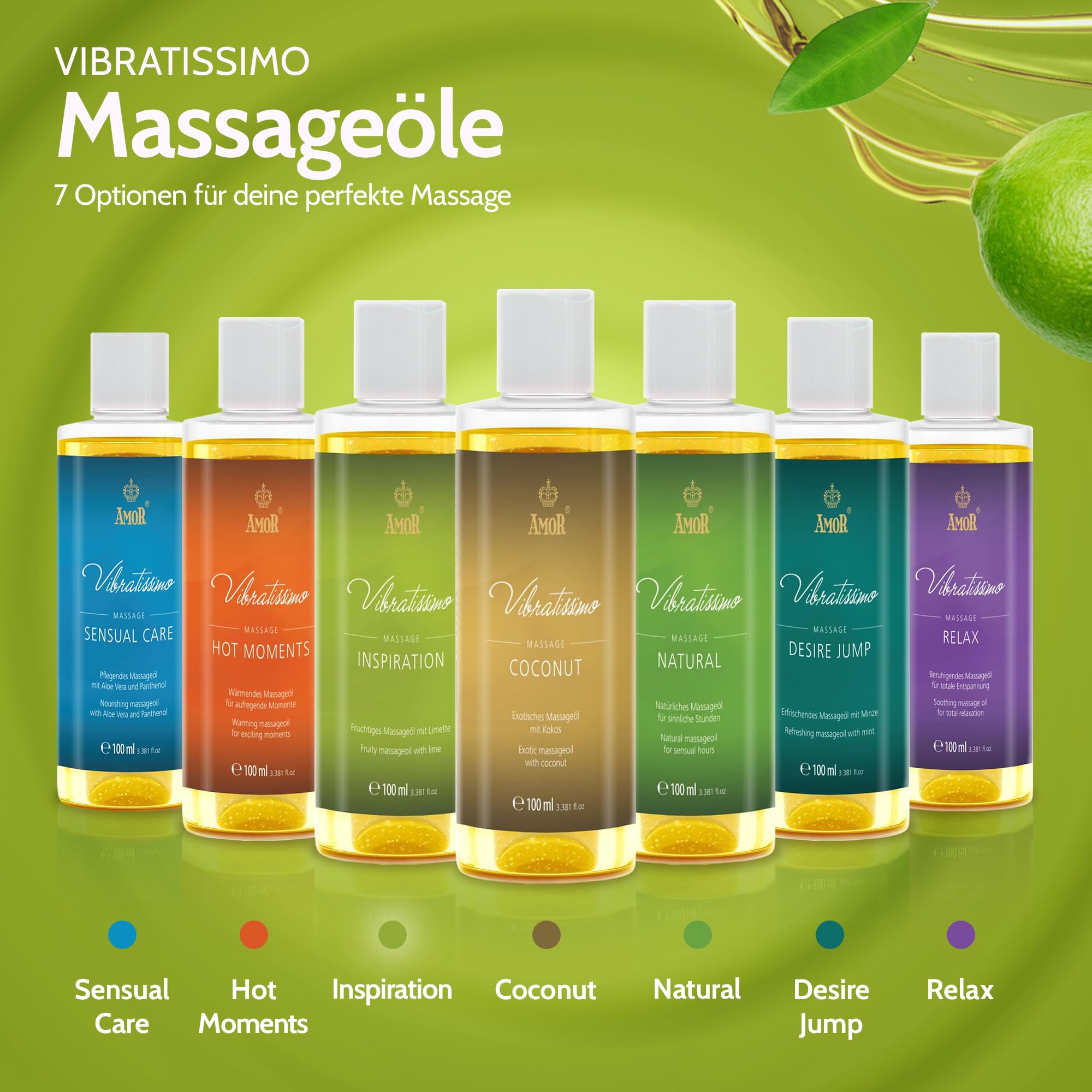 Vibratissimo Inspiration 100 ml Massageöl - Erfrischend mit LimettenDuft - Stimulierend, Zitrus, Frischer Duft & Gleitöl, Liebesöl