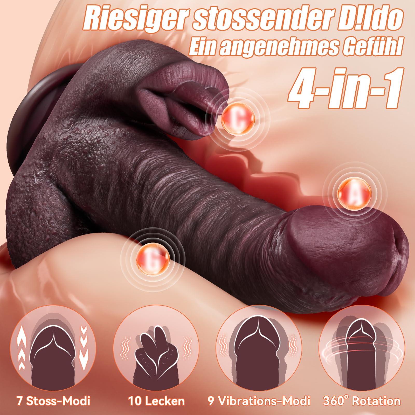 Vibrator Realistischer Dildo Sex Spielzeug für die Frau & Paare – 25,8 cm Saugnapf Dildo Penis, 7 Stoßmodi & 10 Vibrations- und Leckmustern für Klitoris, G-Punkt & Anus, Vibratorenset für Frauen Solo
