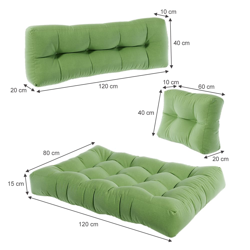 Vicco Palettenkissen Set Flocken, Grün, 120 x 80 cm 3 Teile, zur Polsterung von Sitz- und Rückenflächen auf Europaletten
