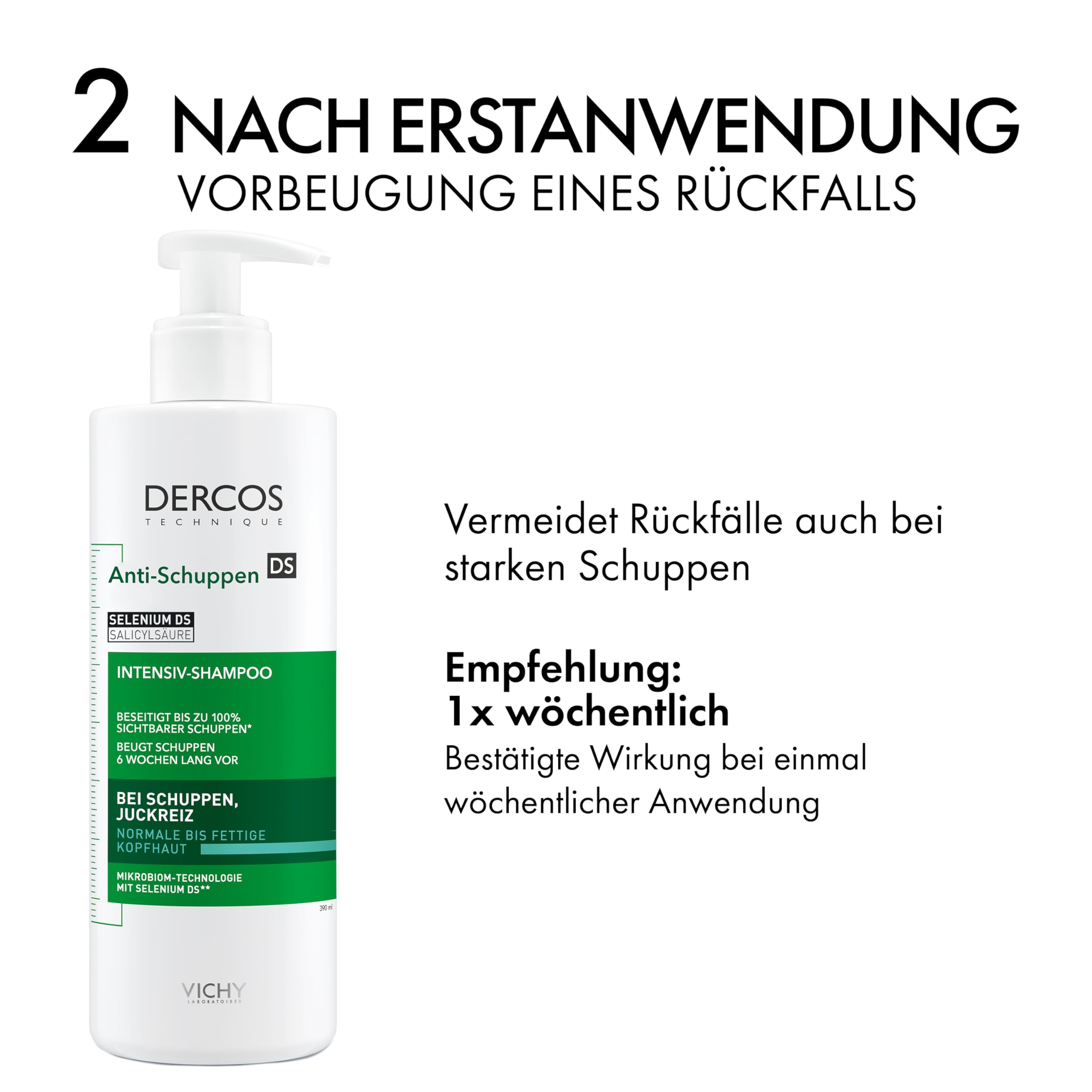 Das Anti-Schuppen-Shampoo wirkt den Ursachen der Schuppenbildung effektiv entgegen. Vitamin-E und Cohesyl unterstützen die Funktion der Hautschutzbarriere und fördern das Gleichgewicht des Mikrobioms. Selendisulfid und Salicylsäure entfernen Schuppen und wirken erneuter Schuppenbildung entgegen. Wirkt beruhigend auf die Kopfhaut, mildert Juckreiz und mögliche Irritationen und sorgt für ein angenehmeres Hautgefühl. 6-wöchige Anti-Rückfall-Wirkung. Auf die nasse Kopfhaut auftragen und mit sanften Bewegungen einmassieren. Bei der ersten Anwendung vor dem Ausspülen zwei Minuten einwirken lassen. In den ersten vier Wochen wird das Anti-Schuppen Shampoo 2-3 Mal pro Woche als Kur angewendet. Danach genügt eine Anwendung pro Woche.