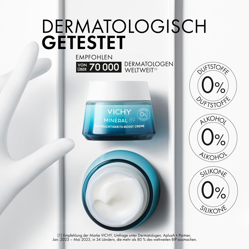 Vichy Minéral 89 72H Feuchtigkeits-Boost Creme (50ml) – Gesichtspflege mit Hyaluronsäure, Niacinamid & Squalan – Für normale bis trockene Haut