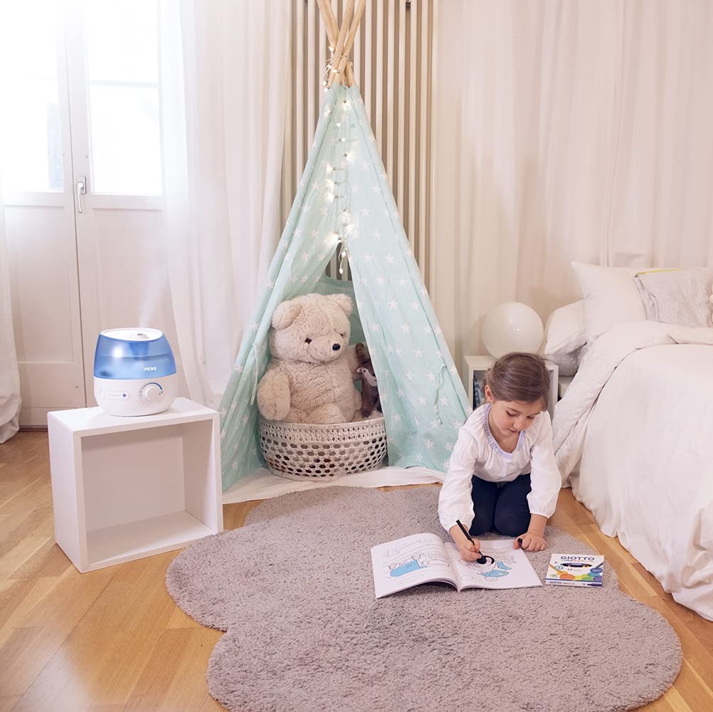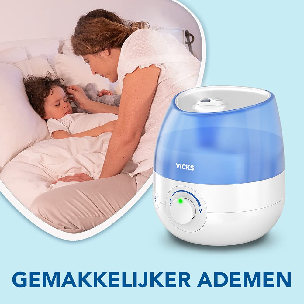 Vicks Mini Cool Mist Ultraschall-Luftbefeuchter (kompakt, leise, für besseren Schlaf, Husten und Erkältung, Komfort, ätherische Öle, Luftfeuchtigkeit, Räume bis 15m2) VUL525