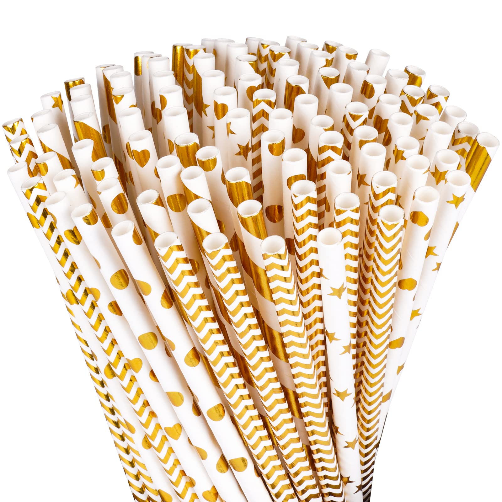 Vicloon Strohhalme Papier, Biologisch Abbaubare Trinkhalme, Bronzing Gold für Partys, Hochzeiten und Anlässe, 100 Stück