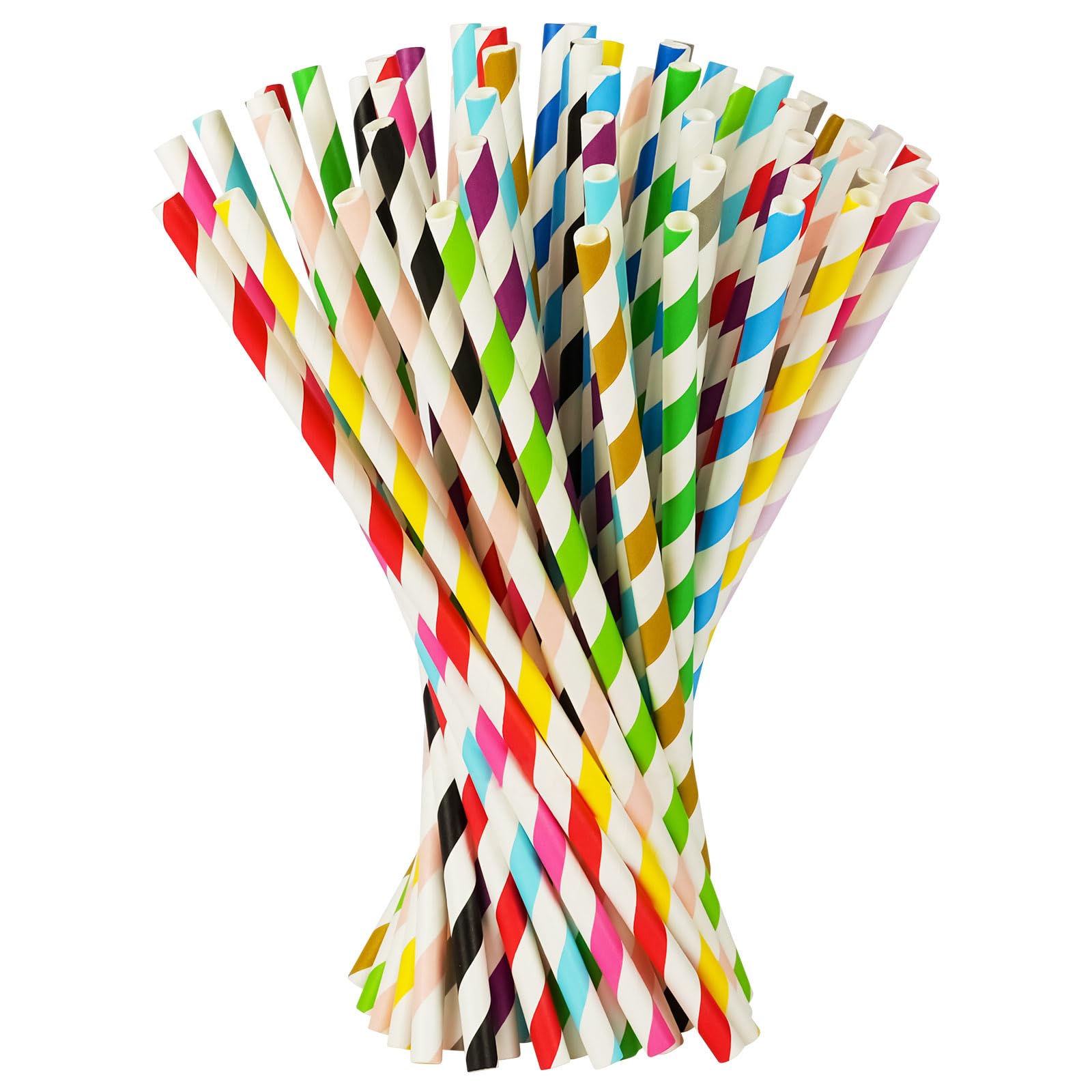 Vicloon 150pcs Strohhalme Trinkhalme Papier Biologisch Abbaubare, Streifen Papier Trinkhalme Geeignet für Partys, Hochzeiten und Anlässe, Party Strohhalme, 15 Streifen