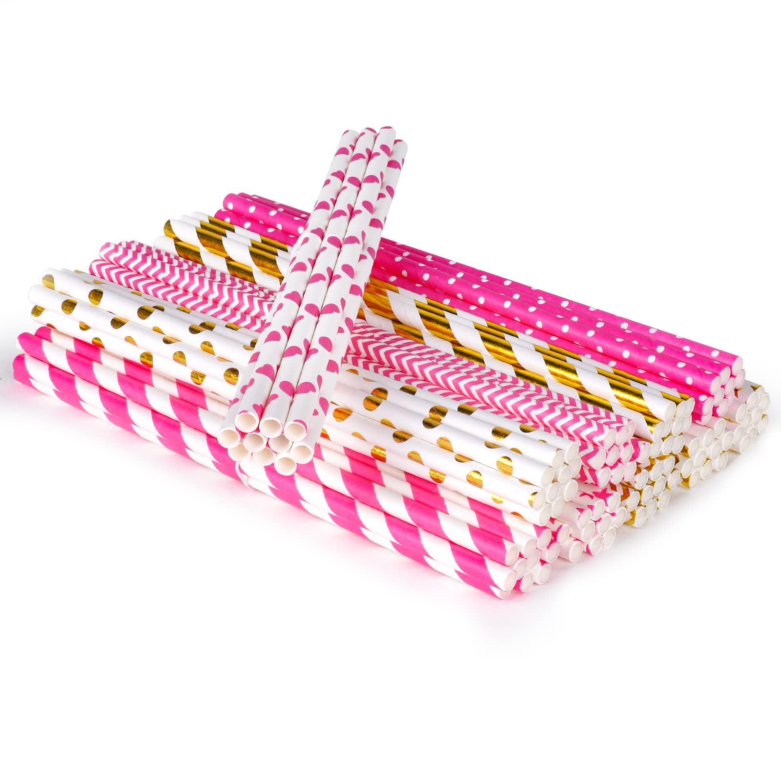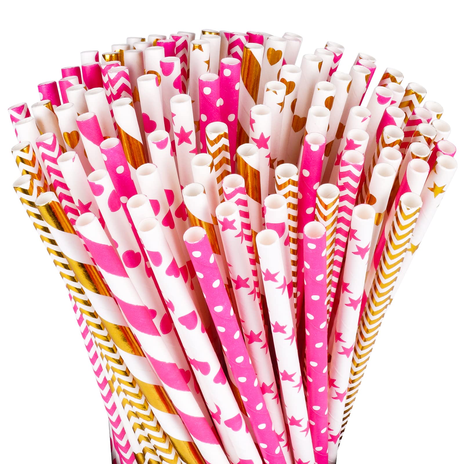 Vicloon 100 Stück Trinkhalme aus Papier, wiederverwendbar, gestreift, bunt, für Mason Jar, Glas, Geburtstag, Hochzeit, Weihnachten, Babydusche, Feier und Party