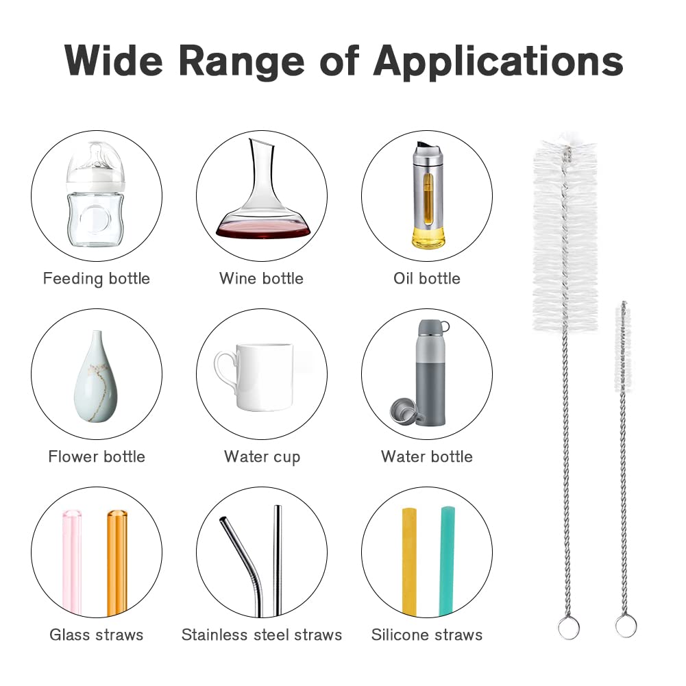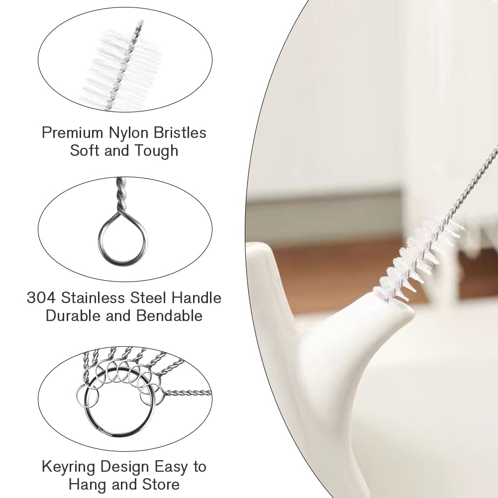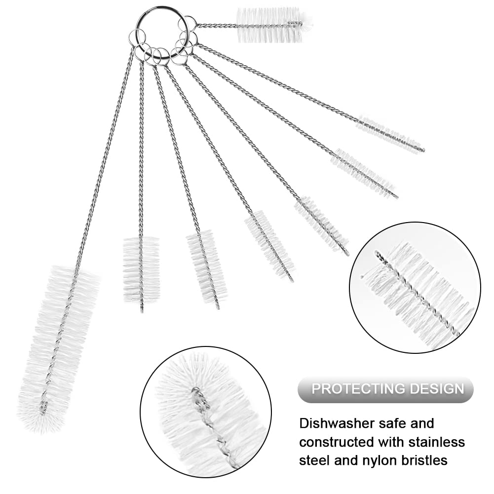 Vicloon Reinigungsbürsten, 8 Stück Flasche Reinigungsbürsten Milchschlauchbürste Nylon Schlauchbürste Set für Reagenzgläser Reinigen Teekanne Düse Trinken Strohhalme(Weiss)