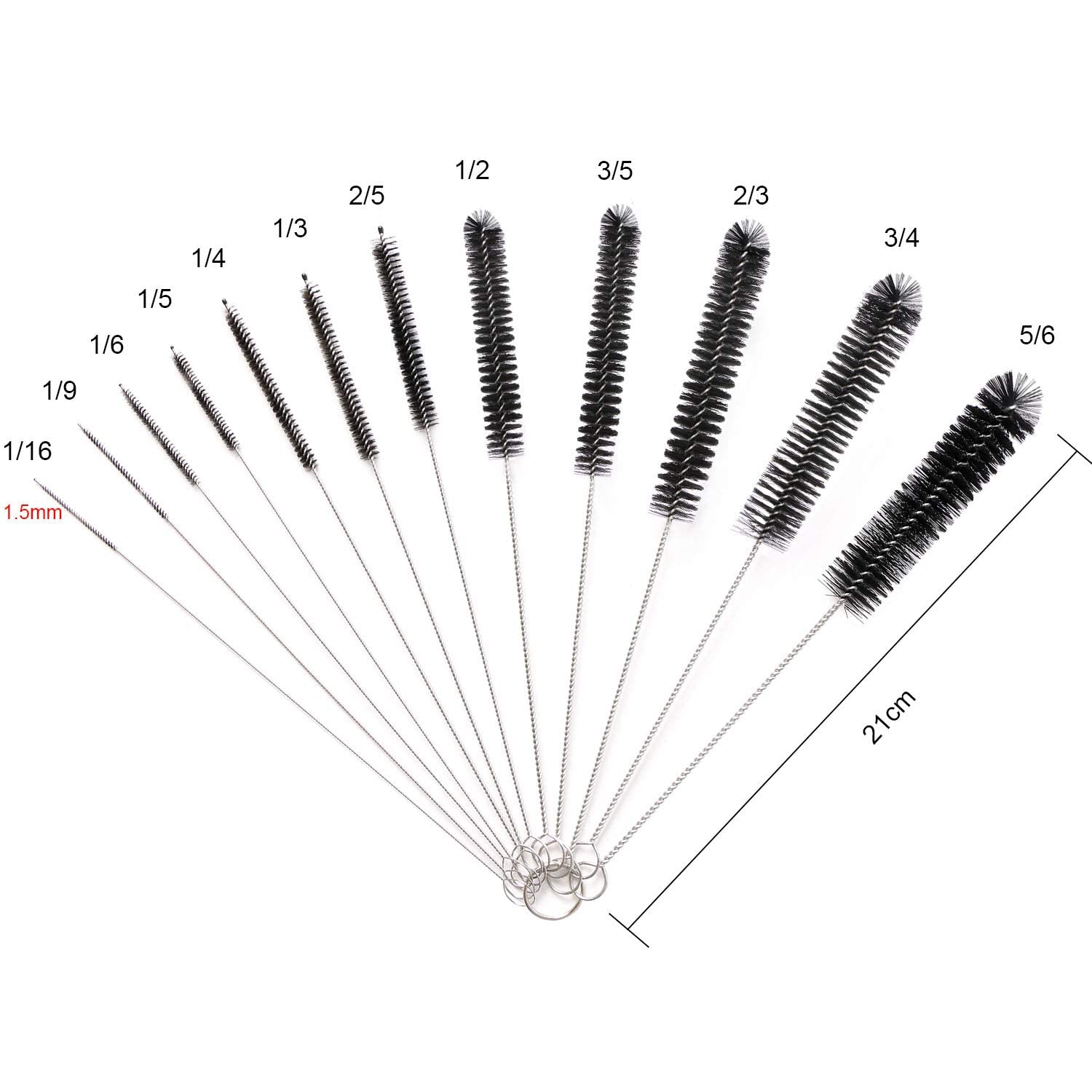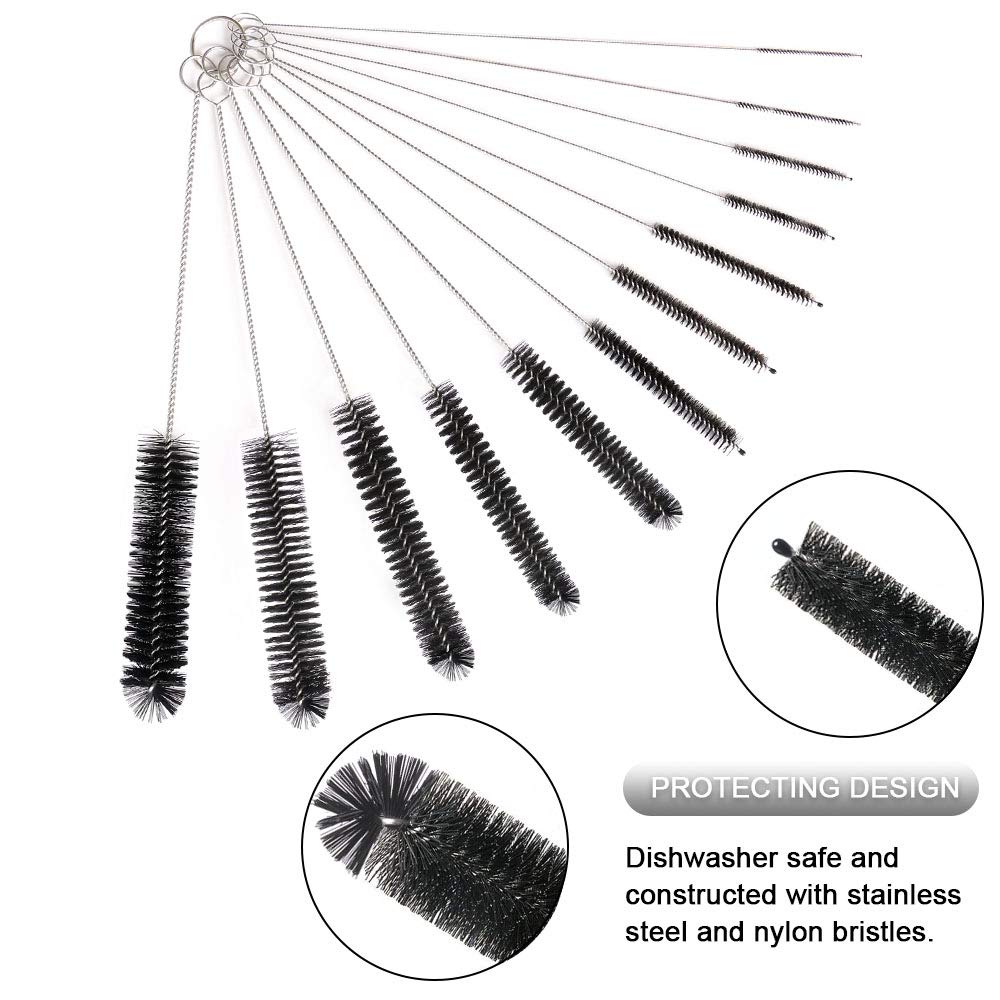 Vicloon Reinigungsbürsten, 12 Stück 21 cm Lange Bürsten, Flasche Reinigungsbürsten Milchschlauchbürste Nylon Schlauchbürste Set für Teekanne Düse, Espresso Machines, Trinken Strohhalme - Schwarz
