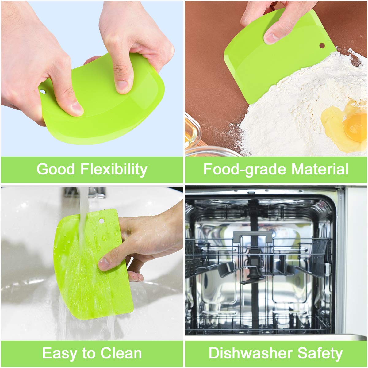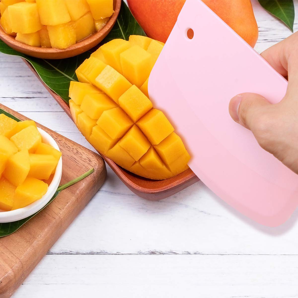 Vicloon Teigschaberkarte Kunststoff, 3 Stück Schüsselschaber, Dough Scraper Plastic, Teigschneider für Teigkuchen, Pizza, Backwerkzeug (Grün/Weiss/Rosa)