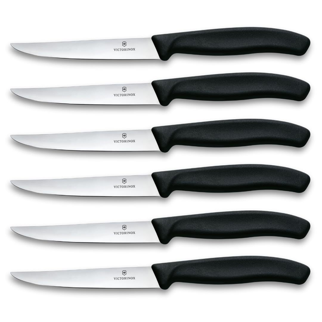 Victorinox Swiss Classic Profi Steakmesser-Set, 6-teilig, Tafelmesser, Spitz, Gerade Klingen, 11 cm, Scharf, Robuste Kunststoffgriffe, Schwarz