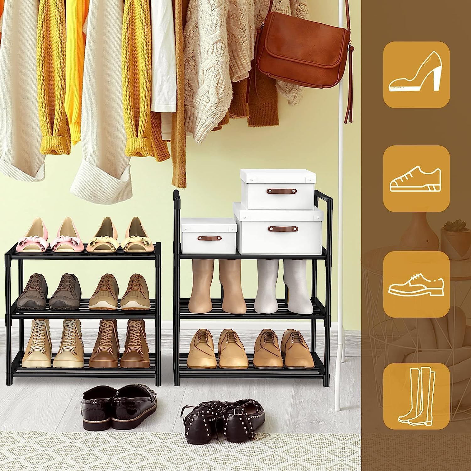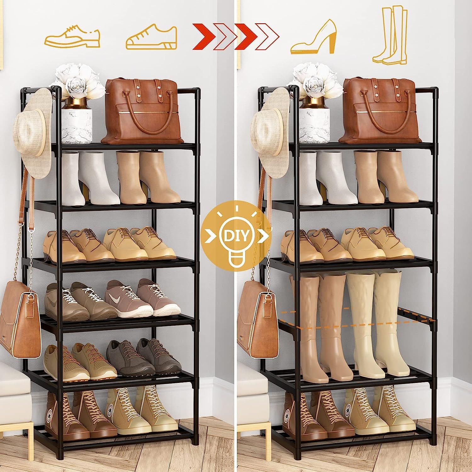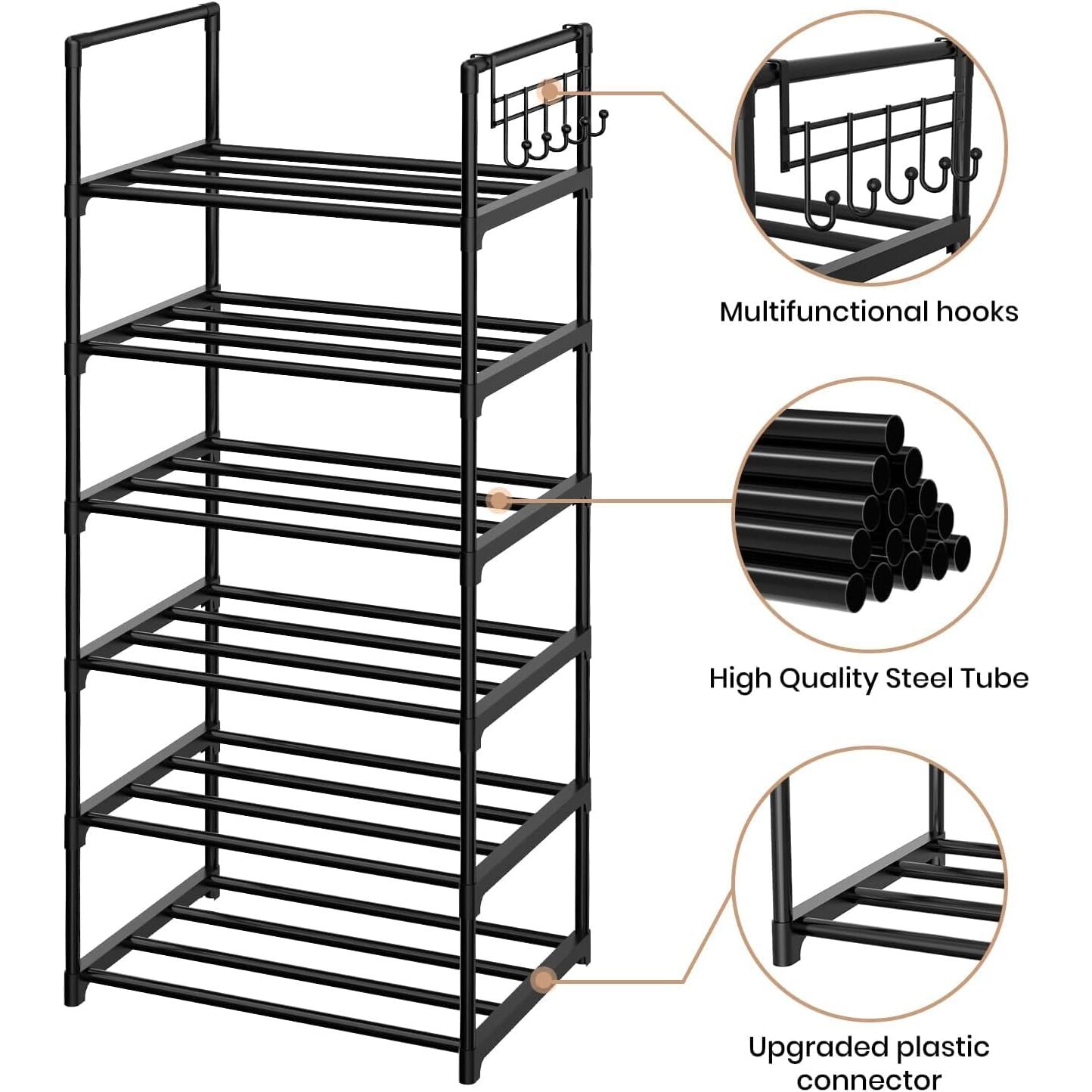 Vicye Schuhregal mit 6 Ablagen Schuhregal Schmal Schuhschrank hoch aus Metall für Flur Schlafzimmer Wohnzimmer Eingang