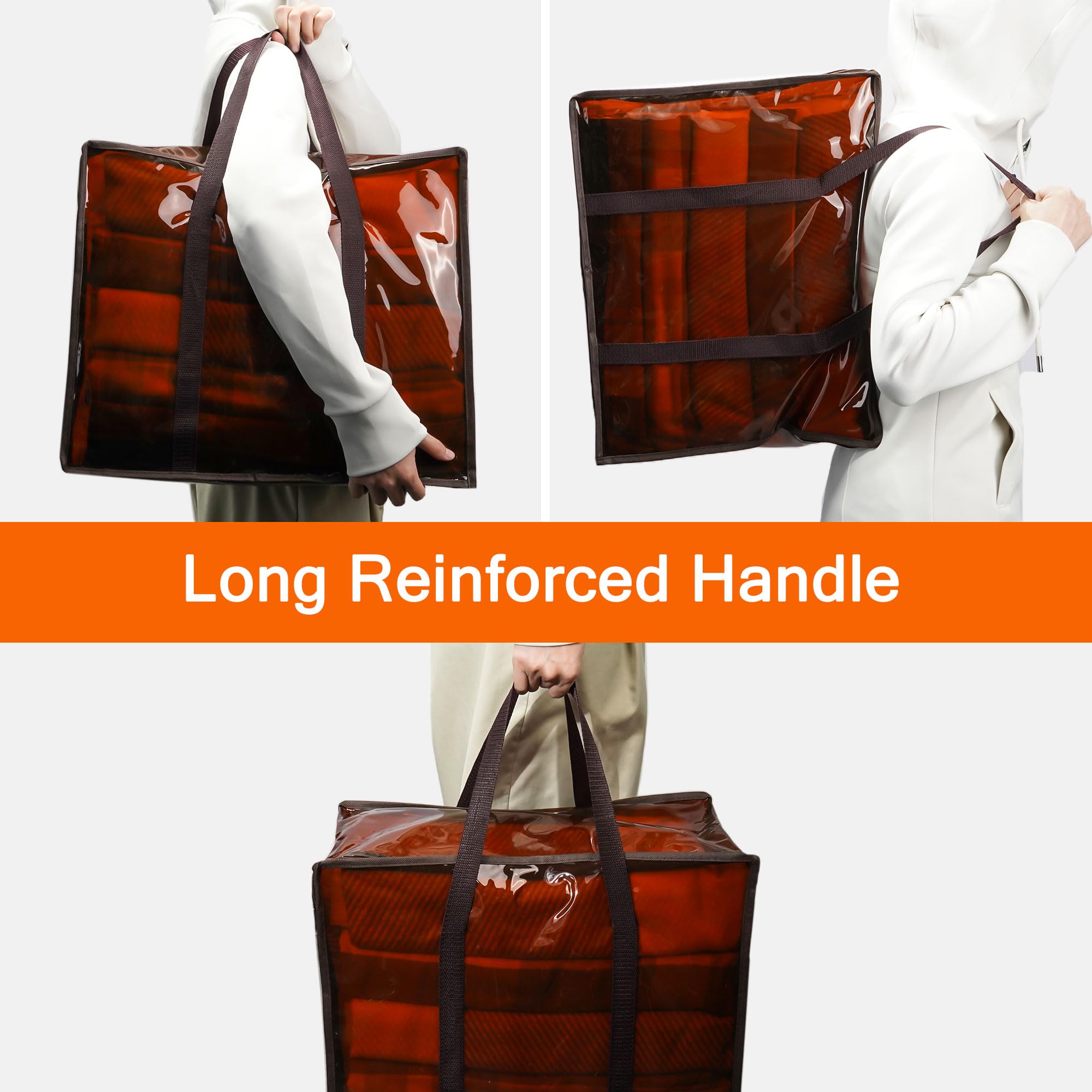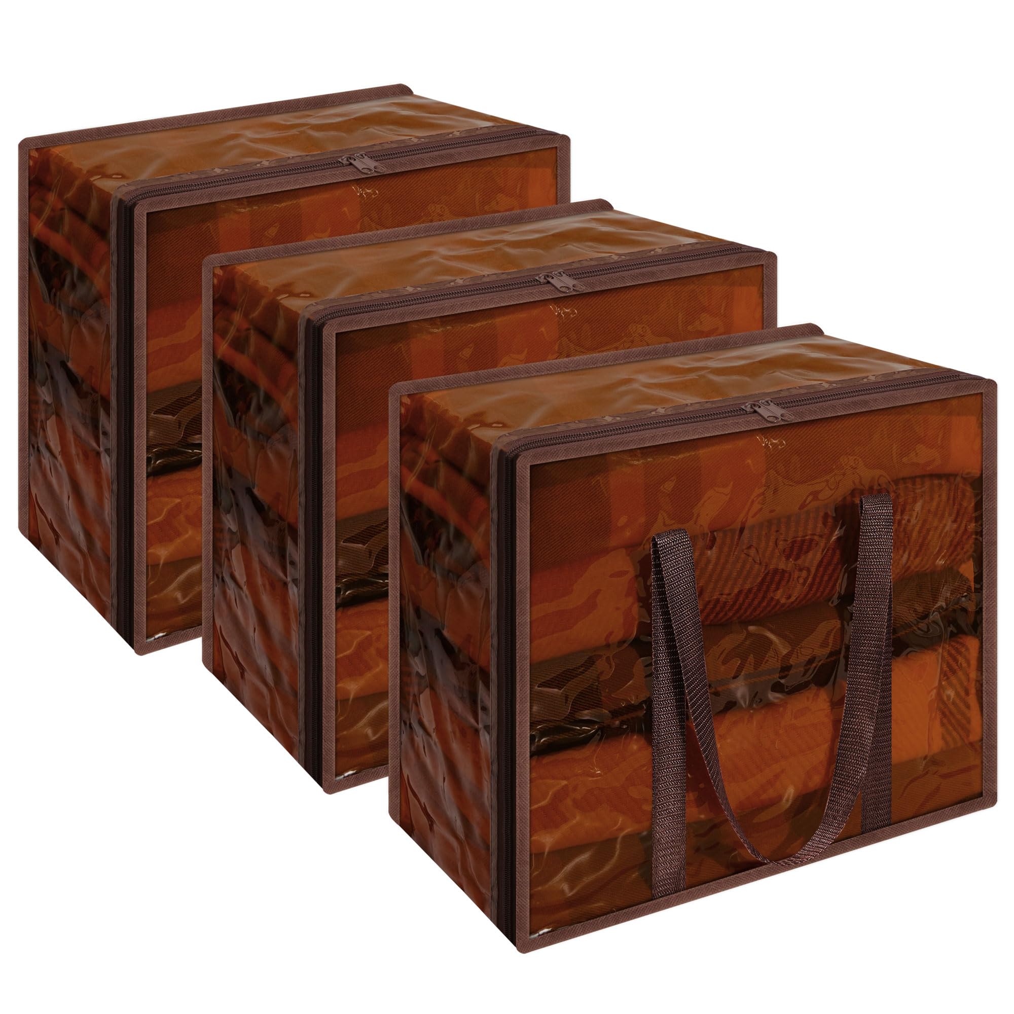 Vieshful 3 Pack Aufbewahrungstasche für Kleidung mit Verstärktem Griff Faltbare Unterbett Aufbewahrungsbox Vinyl Organizer für Bettdecke 40L Braun