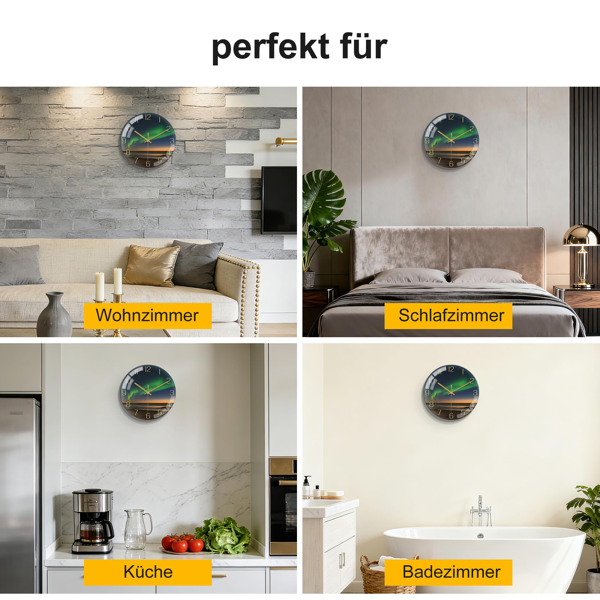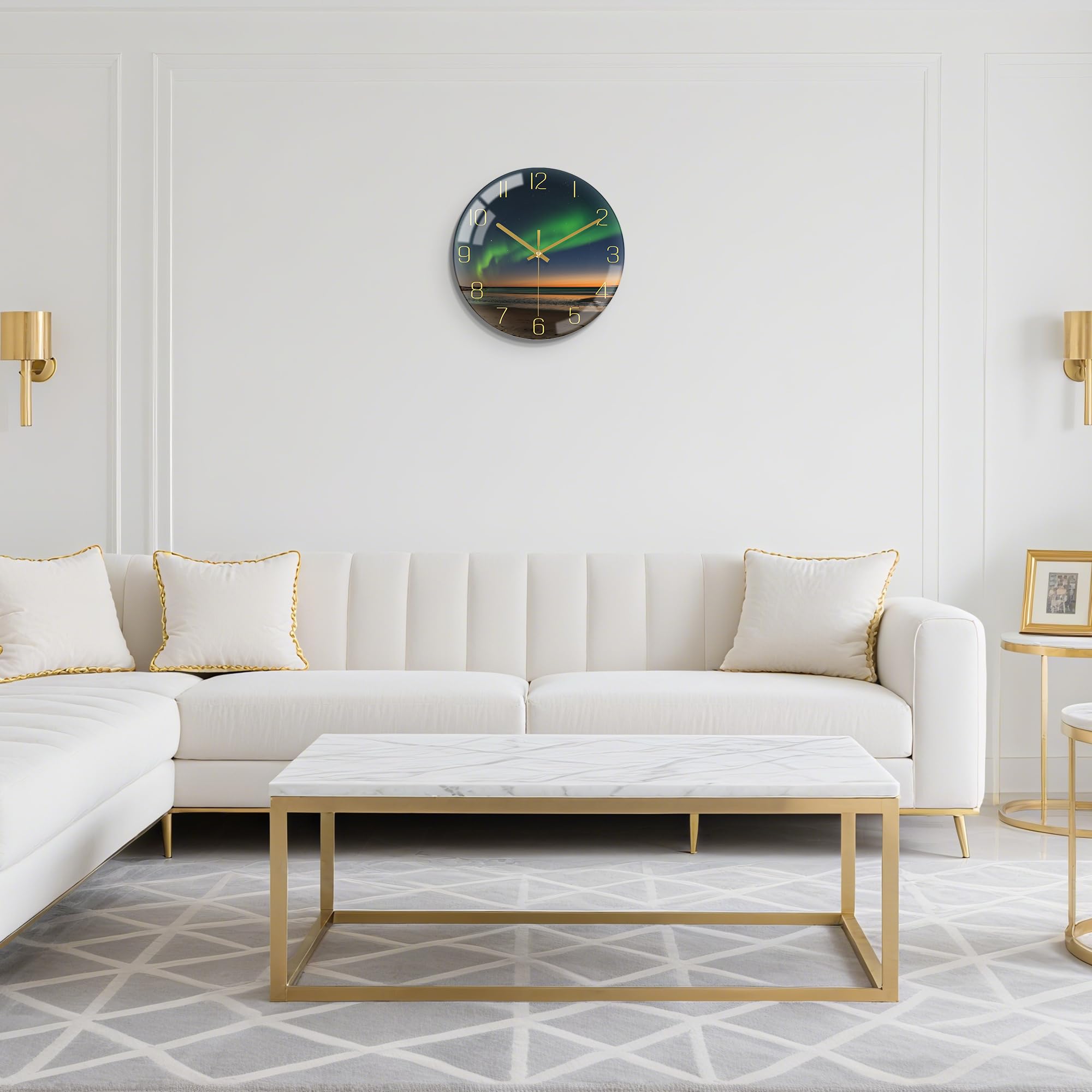 VIKMARI 10 Zoll/25cm Grüne Aurora Wanduhr - Geräuschlos Batteriebetrieben Aurora Nachthimmel Wanduhr, Dekorativ für Wohnzimmer/Küche/Schlafzimmer/Badezimmer/Büro