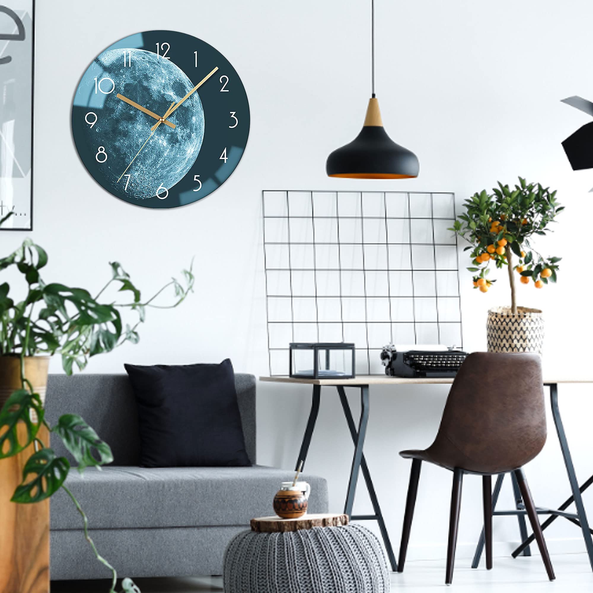 VIKMARI 30 cm Mond Erde Silent Nicht Ticking Wanduhren Batterie angetrieben Runde 12 Zoll Analoge Uhren Dekor für Wohnzimmer Küche Schule