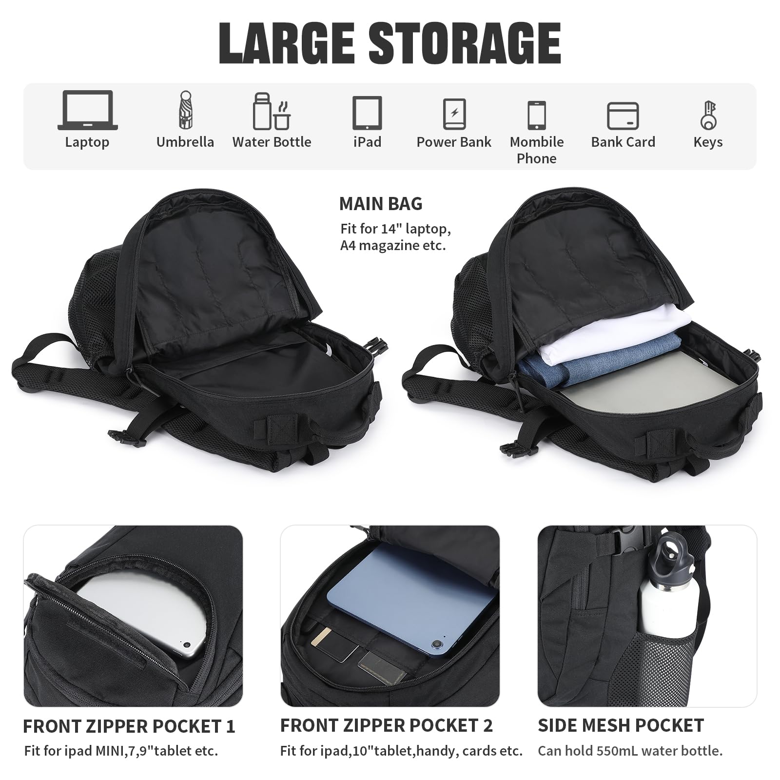 Abmessungen: 28 x 18 x 47 cm (L x W x H)Kapazität: 25LGewicht: 500gAnwendbarer Benutzer: Unisex, Herren, Frauen