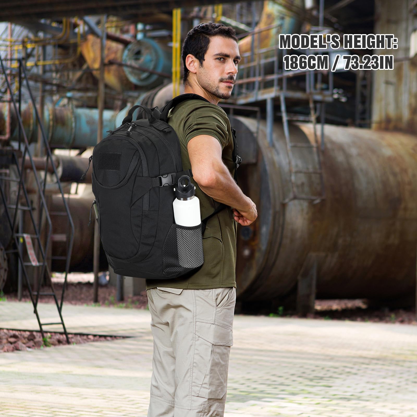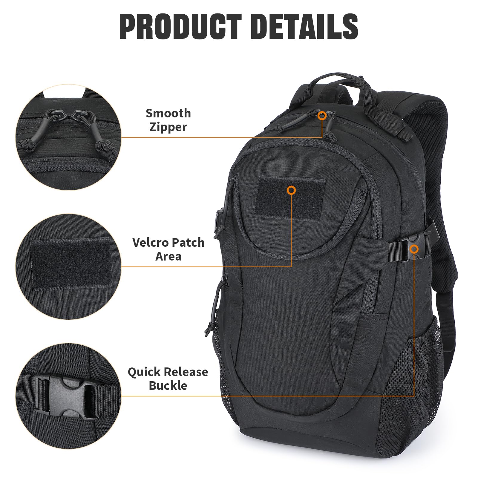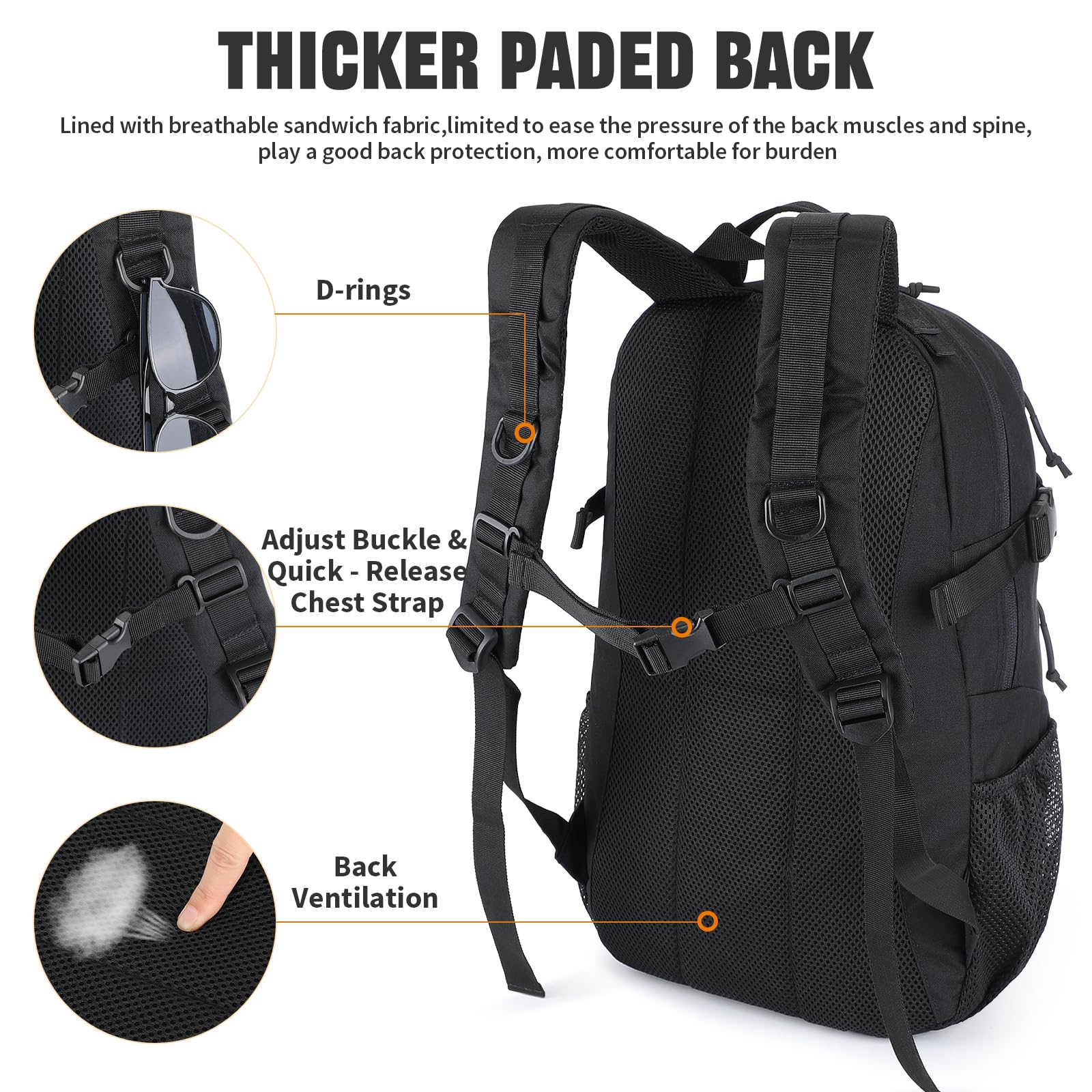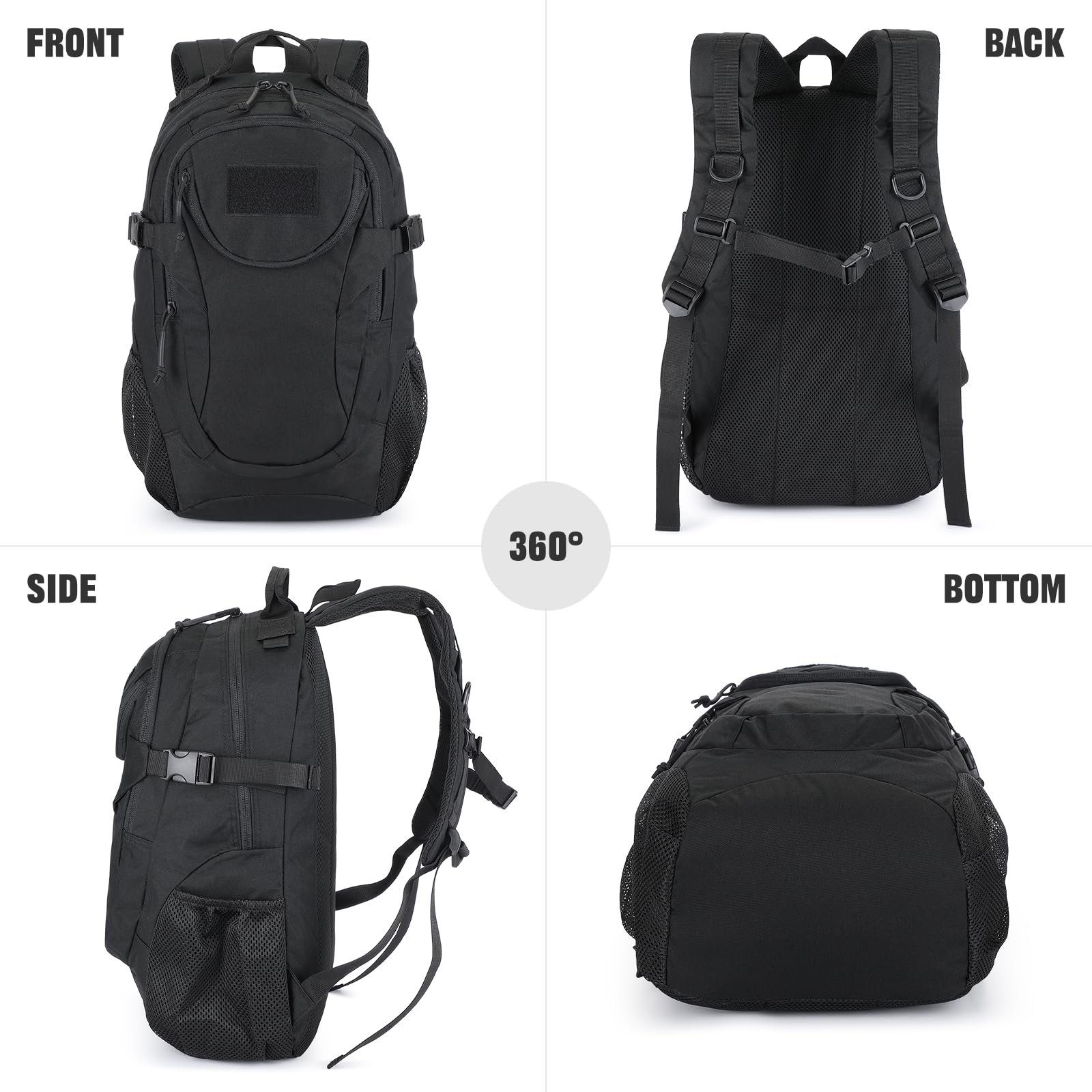 VINBAGGE Rucksack Taktischer Motorrad Wanderrucksack Outdoor Wasserdicht Trekkingrucksack 25L Campus Wandern Arbeit Schulrucksack Jungen Daypack für Herren Damen Schwarz(500D-Aufrüstung)
