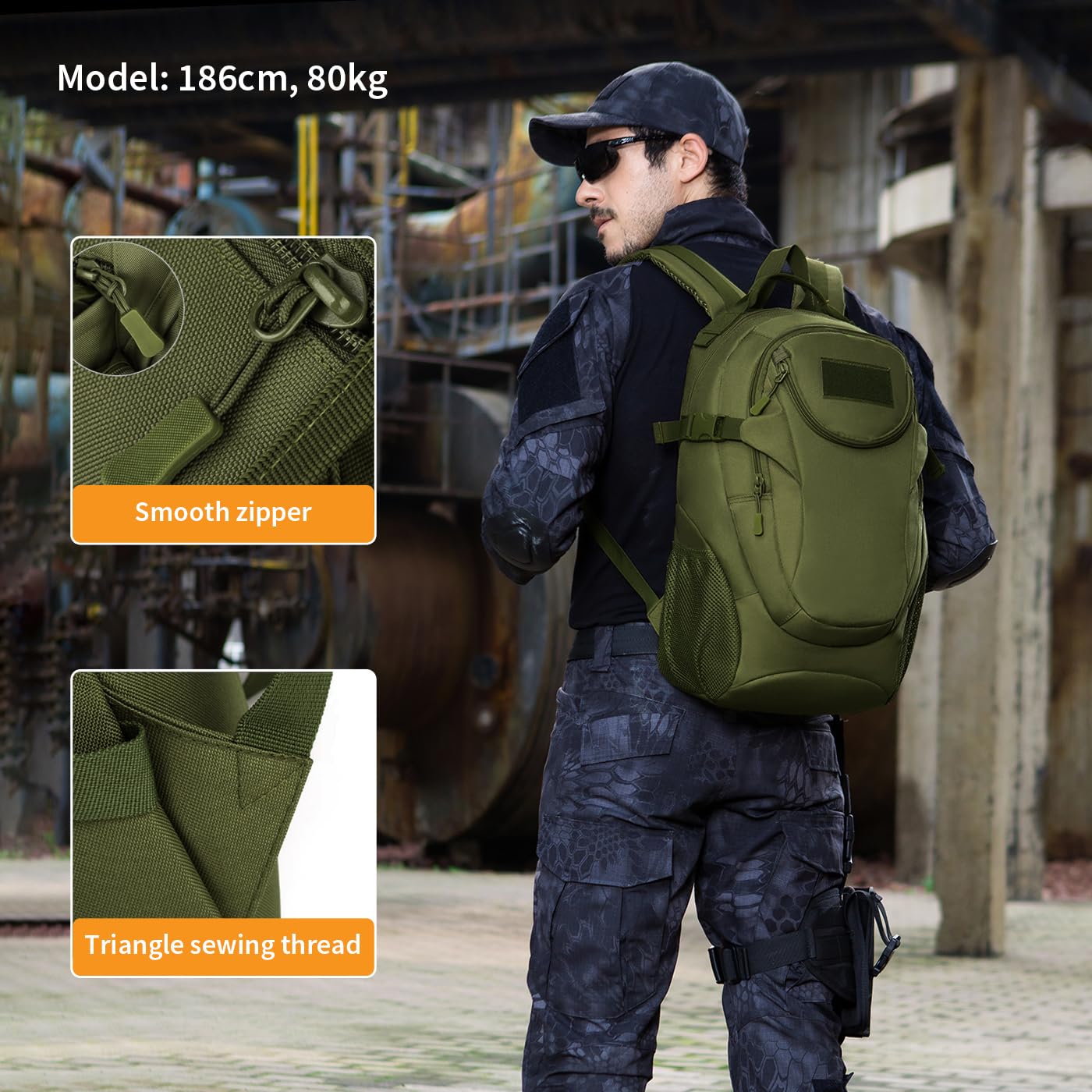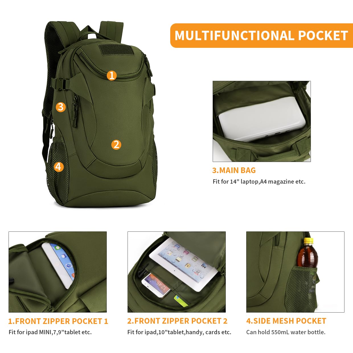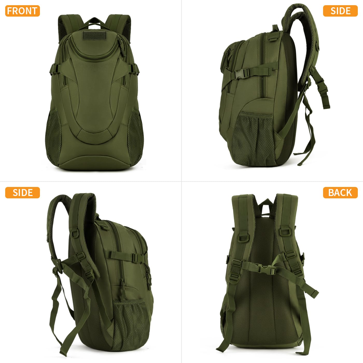 VINBAGGE Rucksack Molle Taktische Motorrad Wanderrucksack Outdoor Wasserdicht Trekkingrucksack 25L Campus Jagdrucksack Schulrucksack Jungen Daypack für Herren Damen Grün