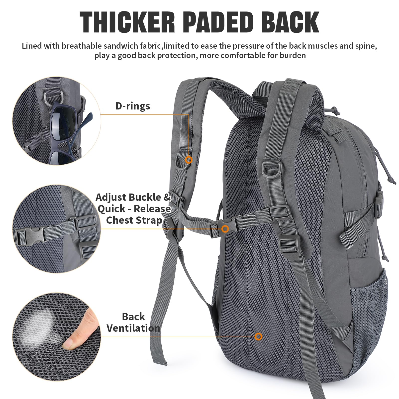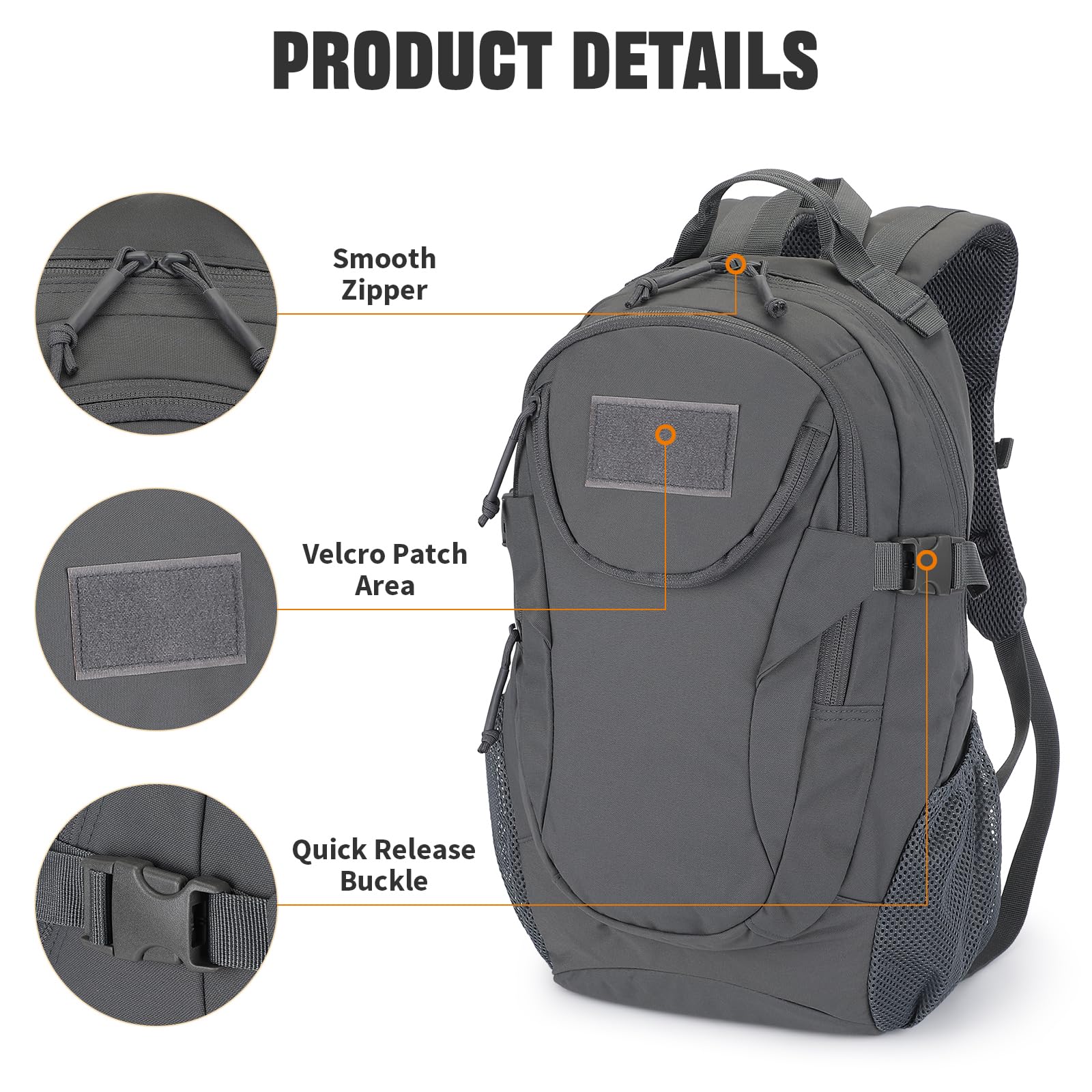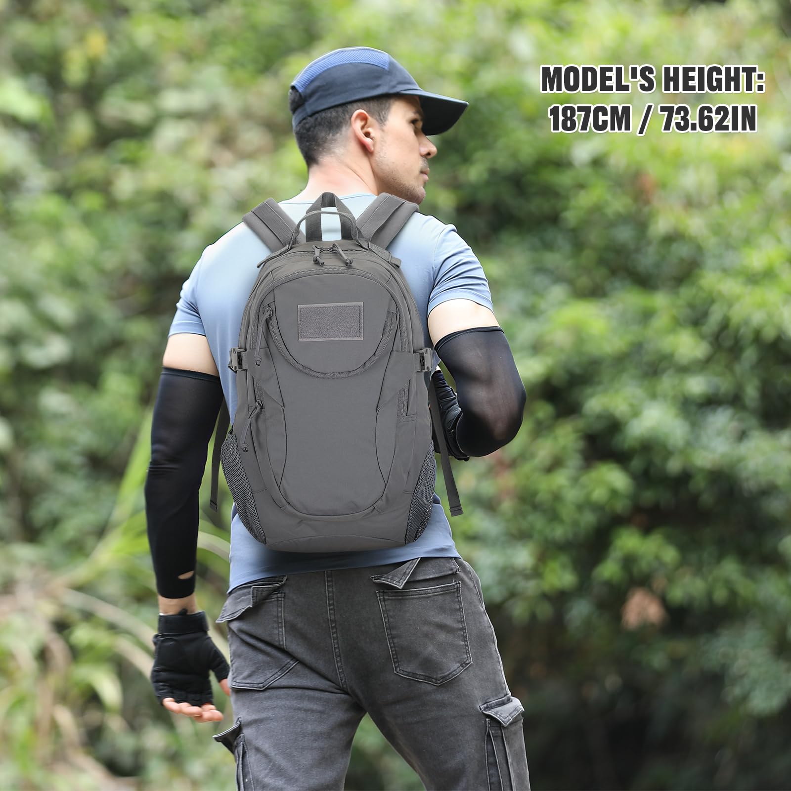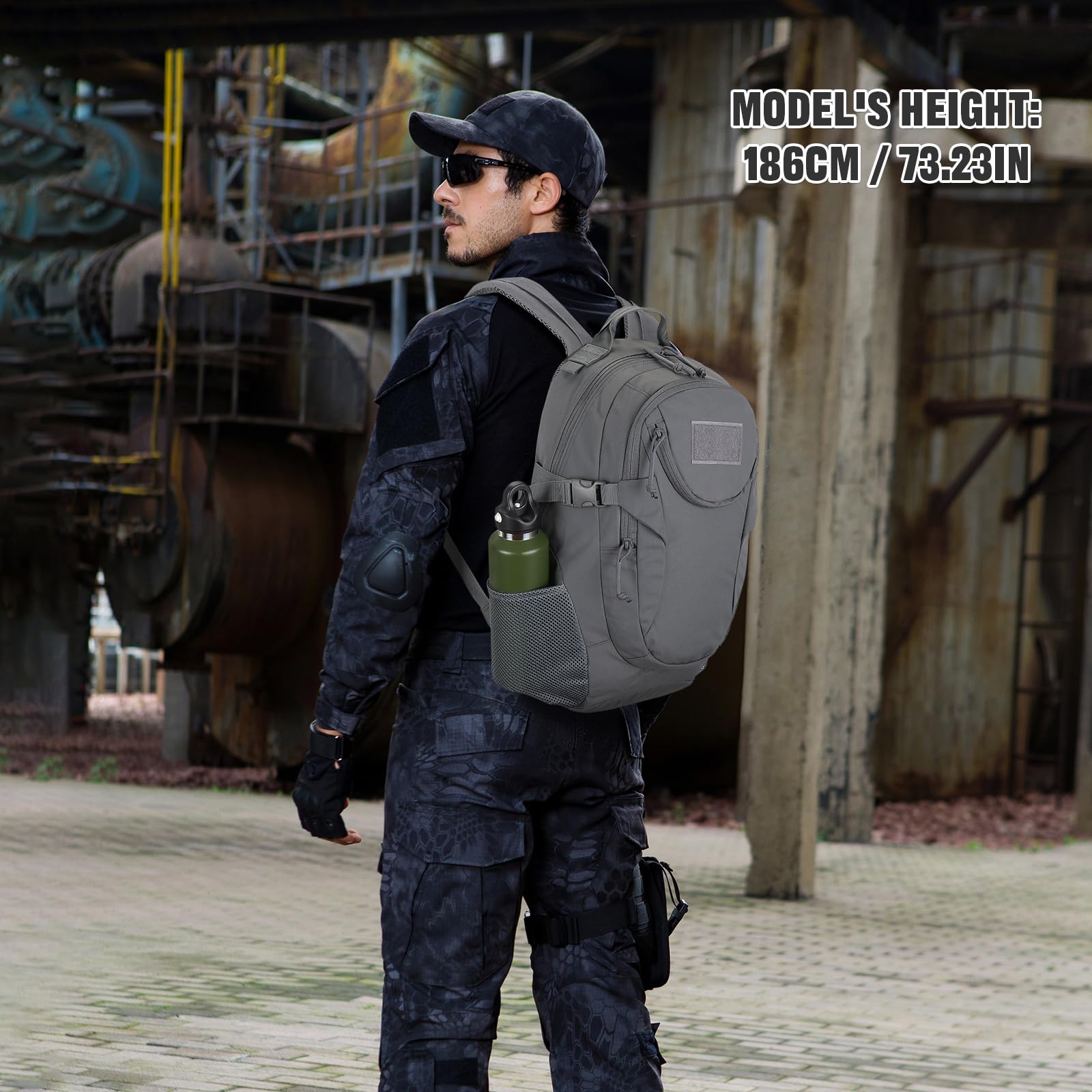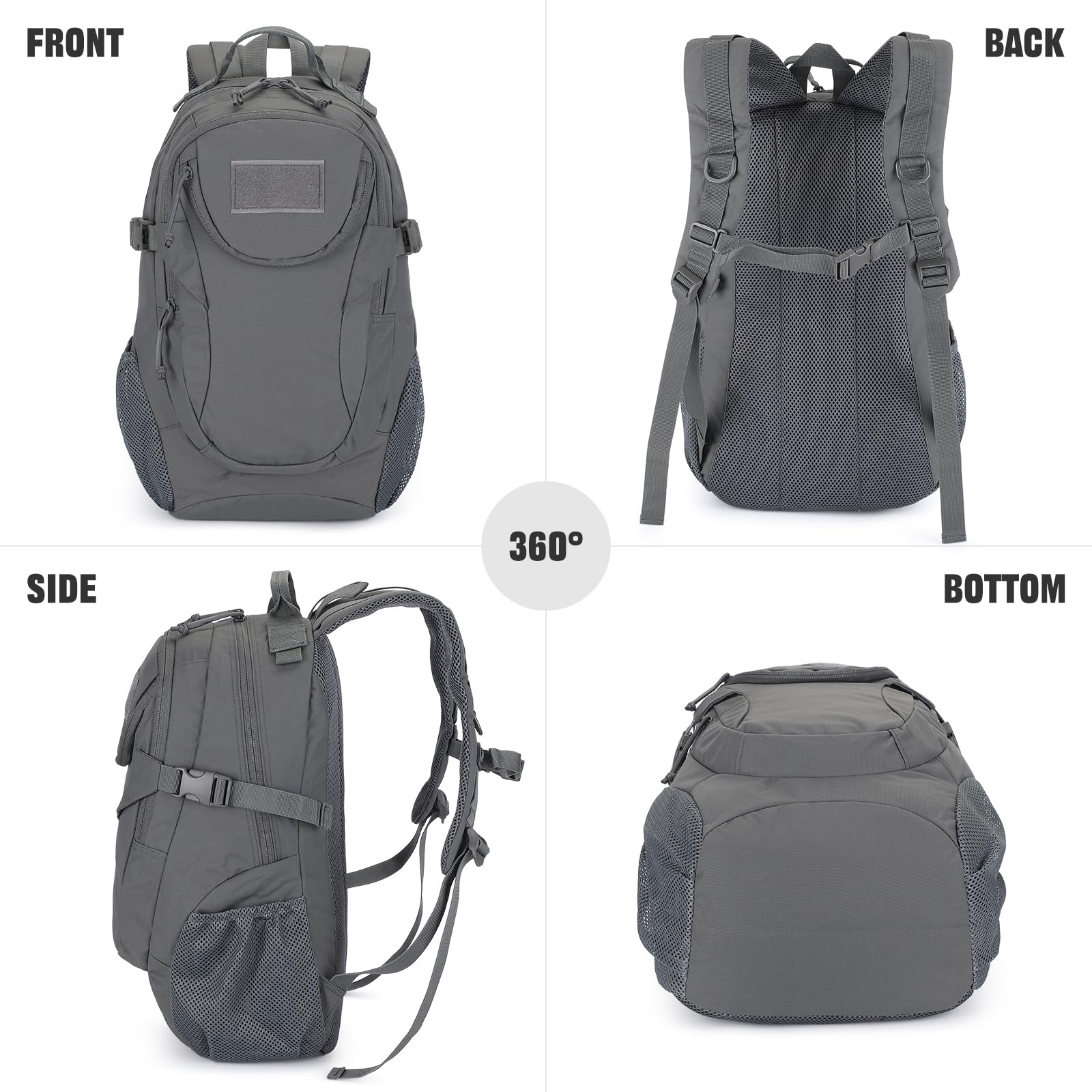 VINBAGGE Rucksack Taktischer Motorrad Wanderrucksack Outdoor Wasserdicht Trekkingrucksack 25L Campus Wandern Arbeit Schulrucksack Jungen Daypack für Herren Damen Grau(500D-Aufrüstung)