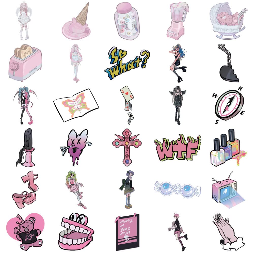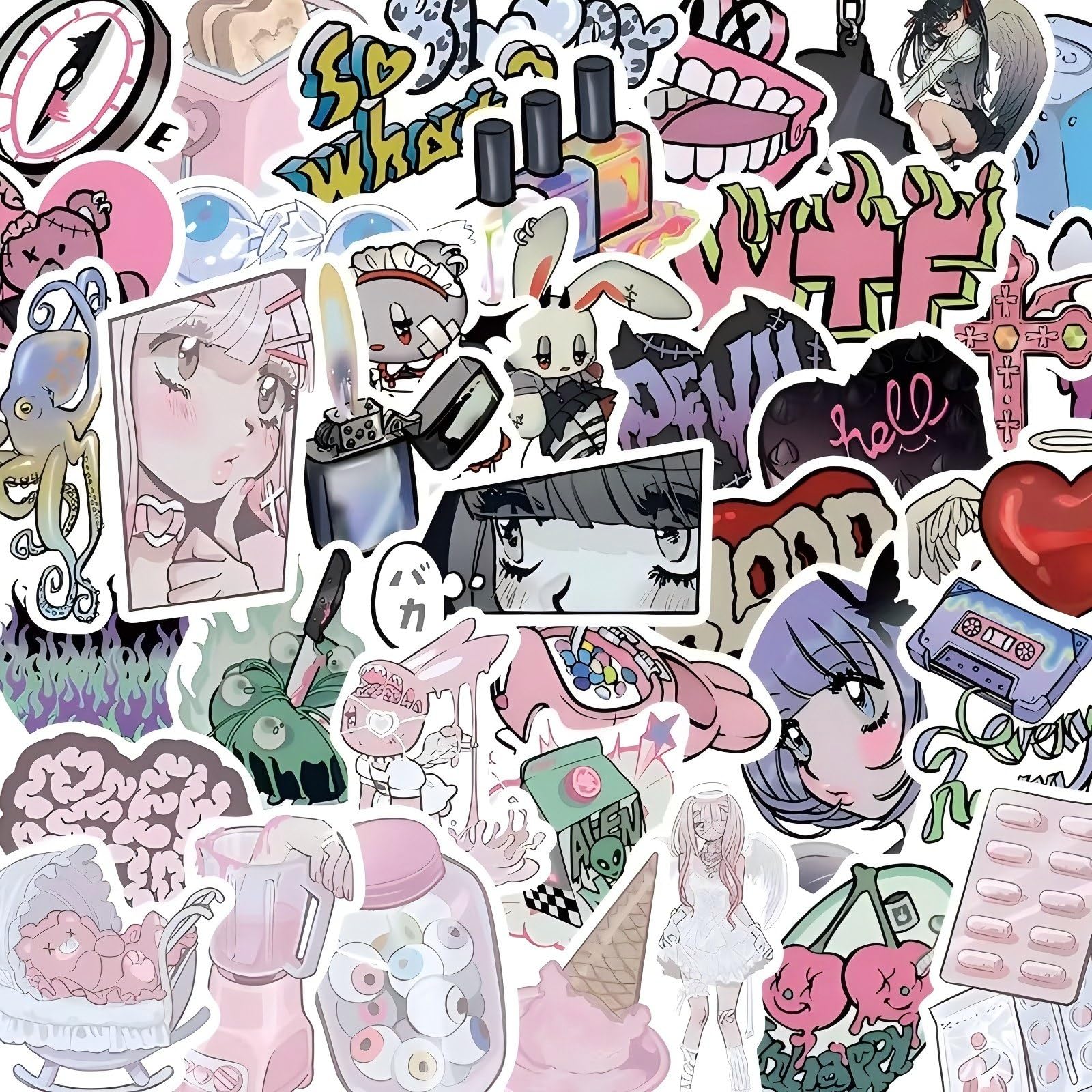 Vintage Aufkleber, Sticker Aesthetic für Wasserflaschen, Scrapbooking, Laptops,Wasserfeste Vinyl Aufkleber für Kinder Mädchen Jugendliche (Y2K Domi Gothic-60 Stück)