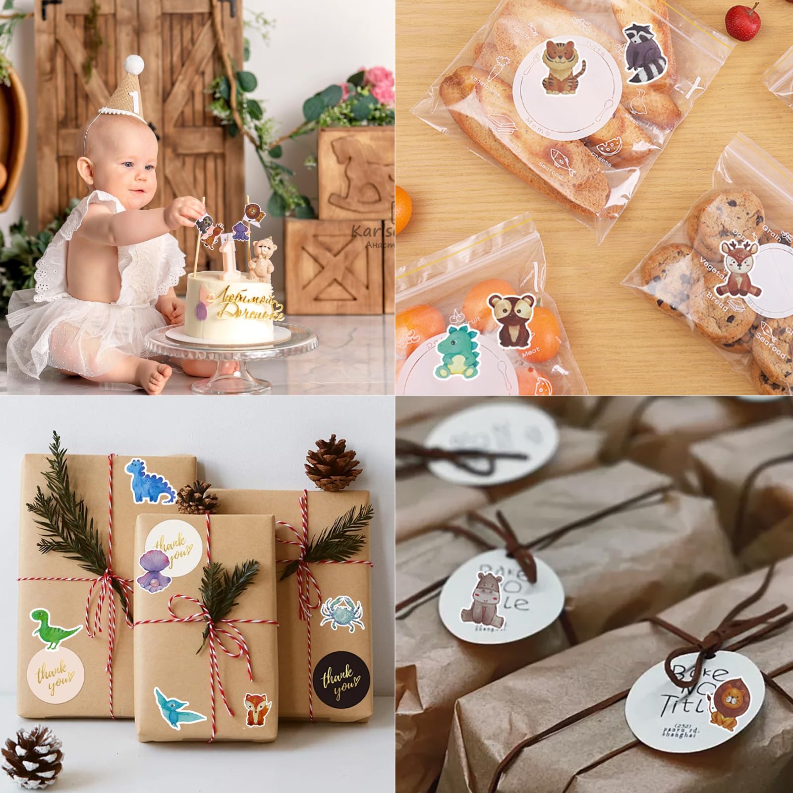 4 Roll Tier Sticker Kinder Stickers,Tieraufkleber Runde Cartoon Tier Aufkleber,Tiersticker Wasserdicht Tiersticker zum Aufkleben Kinder,Selbstklebende Stickerrolle für Scrapbook Laptop Trinkflasche