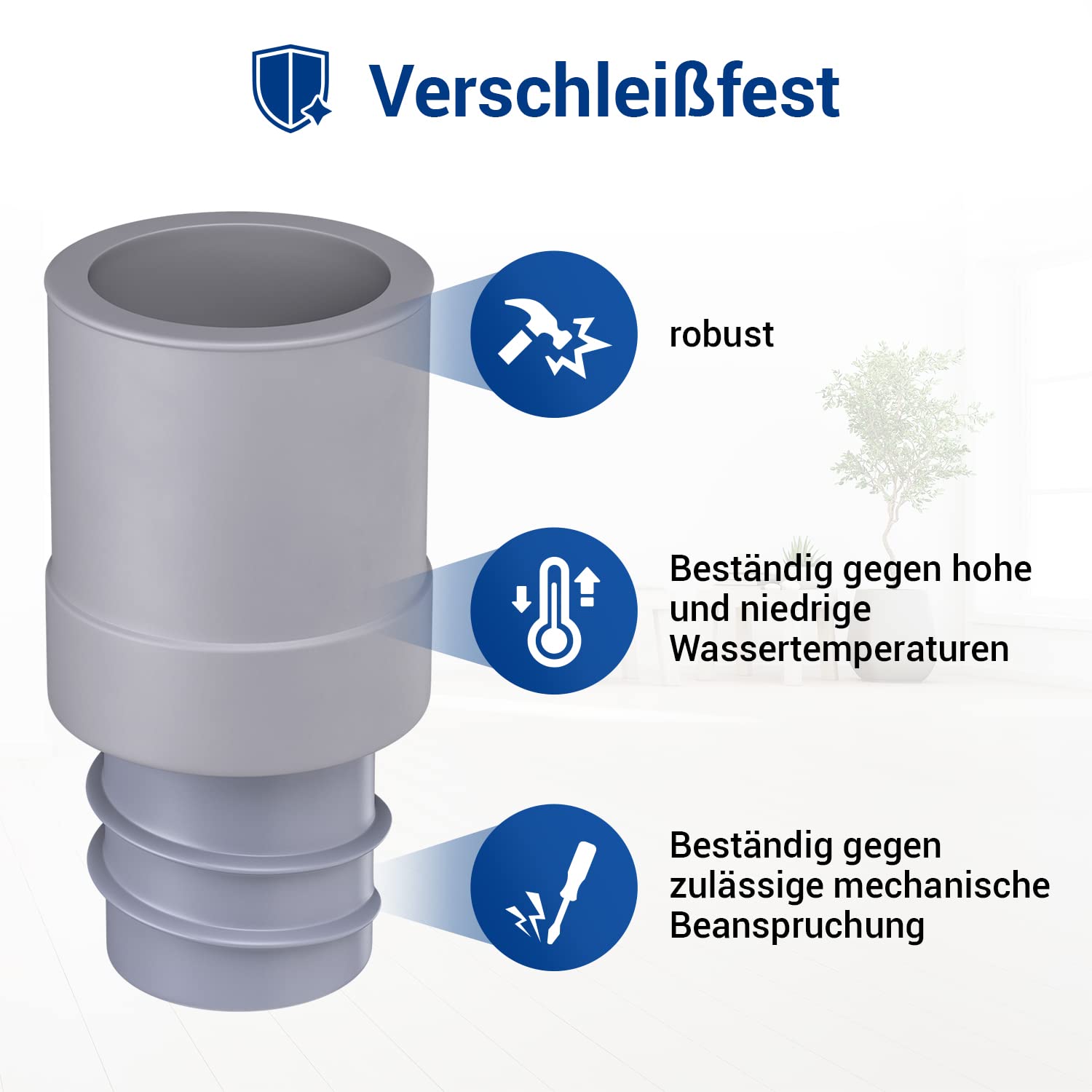 • EINFACHE INSTALLATION: Dieses Verbindungsstück für Ablaufschlauch Verlängerung / Abwasserschlauch Waschmaschine wird leicht installiert; Kleben Sie dieses Endstück zum Abdichten mit FD-Plast in den Ablauf-Schlauch ein
