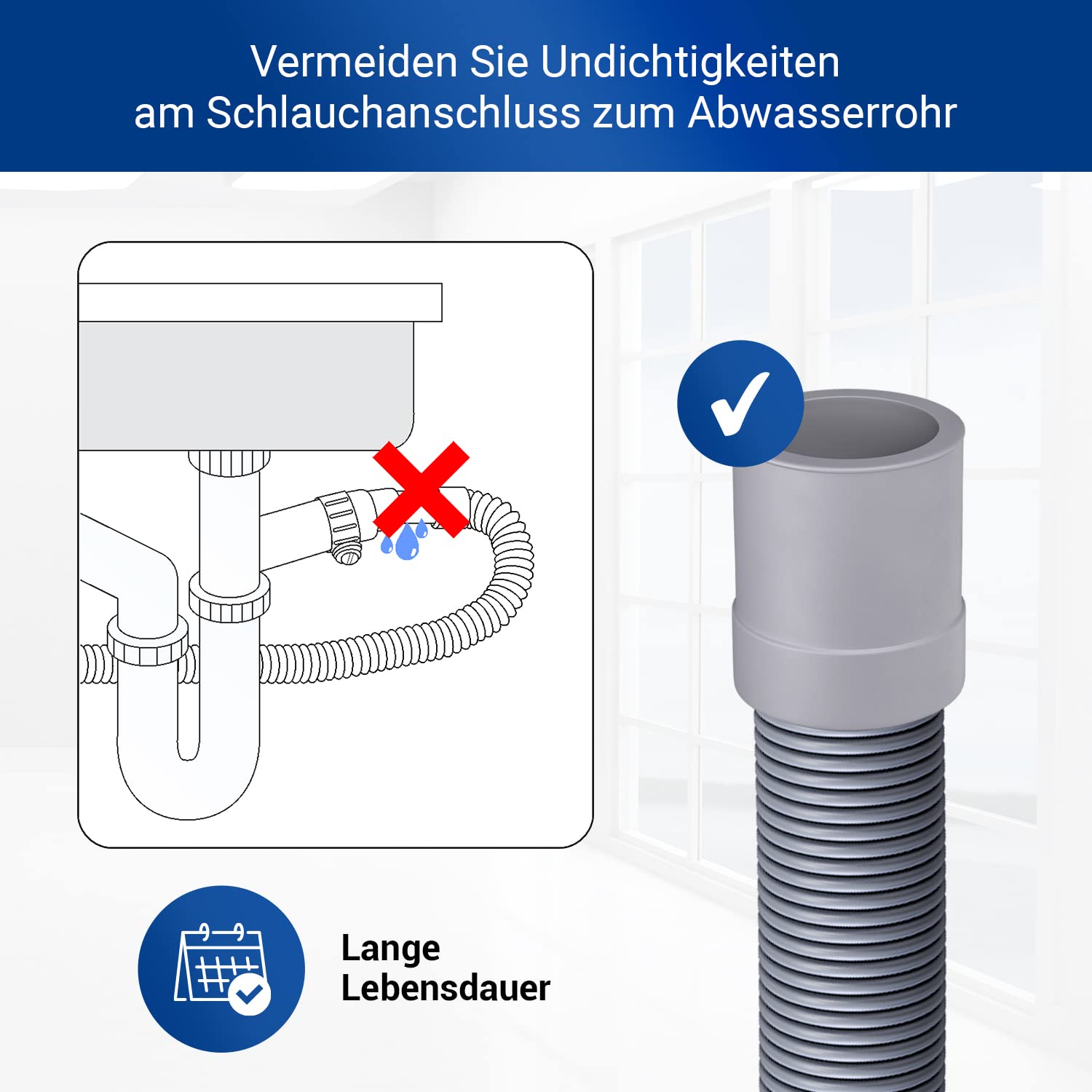 • LUFTDICHT: Das Waschmaschine Ablaufschlauch Endstück wird fest fixiert, dies gewährleistet die Luftdichtheit und somit lange Nutzungsdauer von diesem Ablaufanschluss Adapter für Abfluss Waschmaschine / Spülmaschine Ablaufschlauch