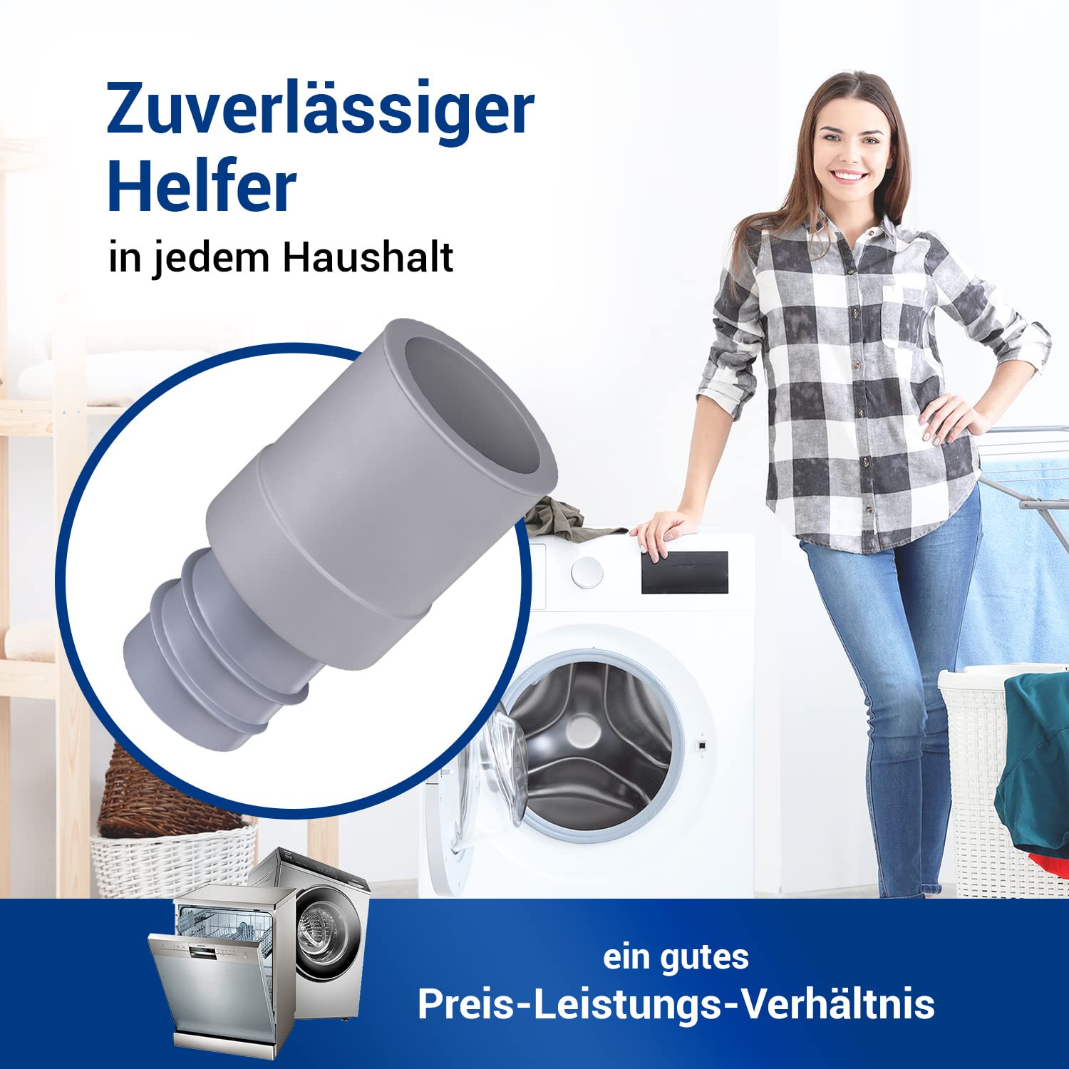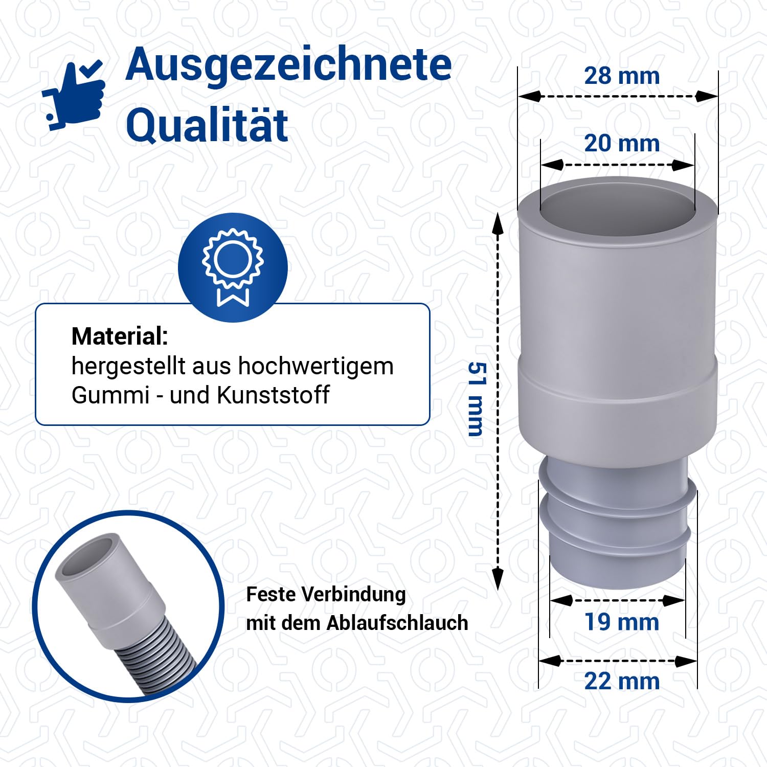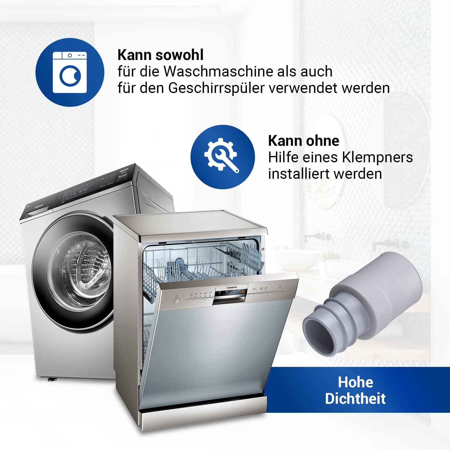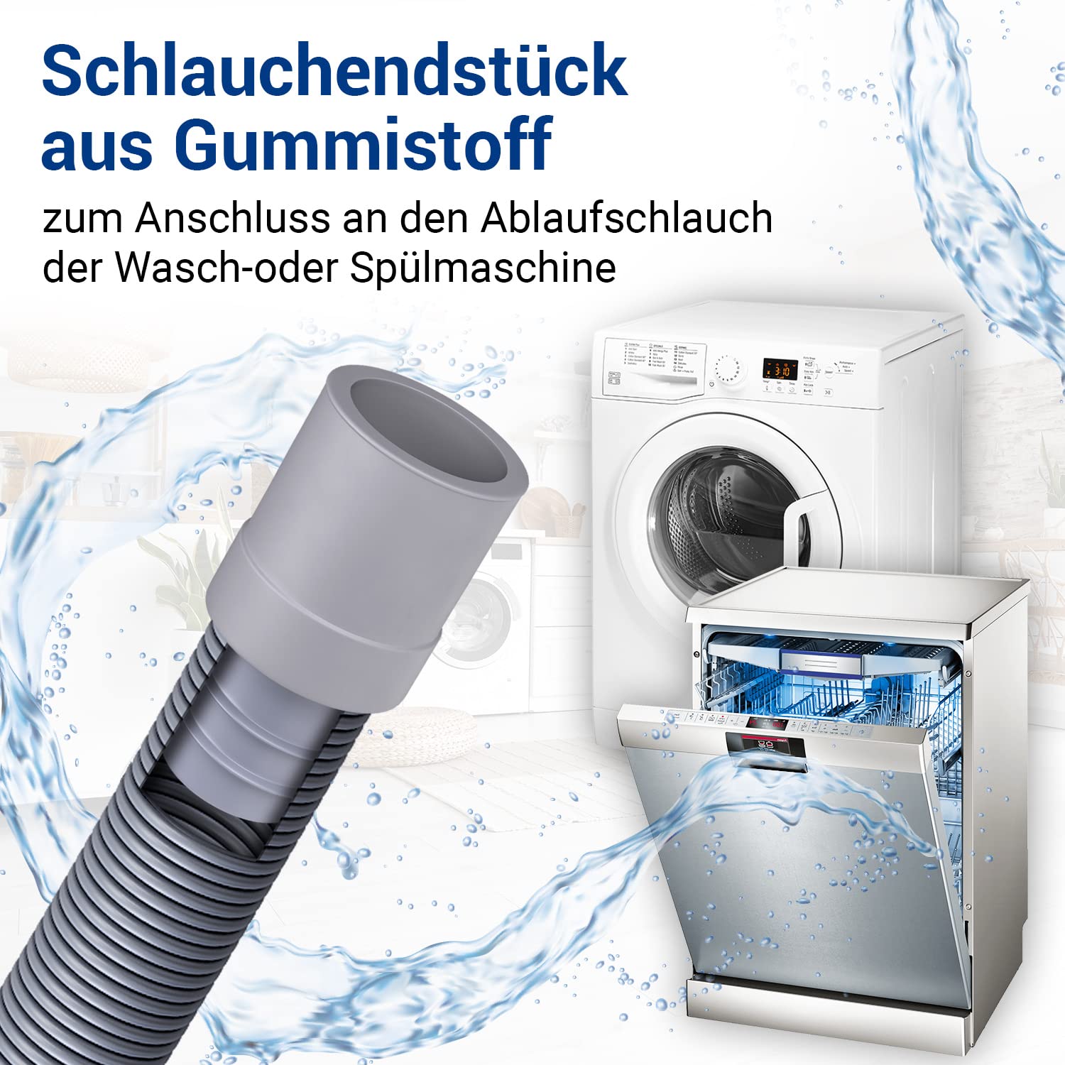 • HOHE QUALITÄT: Dieser Waschmaschinen Ablaufschlauch Adapter für Abwasser Anschluss ist aus robusten, temperaturbeständigen Kunststoff / Gummi hergestellt und dient als nachhaltiger Waschmaschienenabfluss Anschluss / Spülmaschine Anschluss Adapter