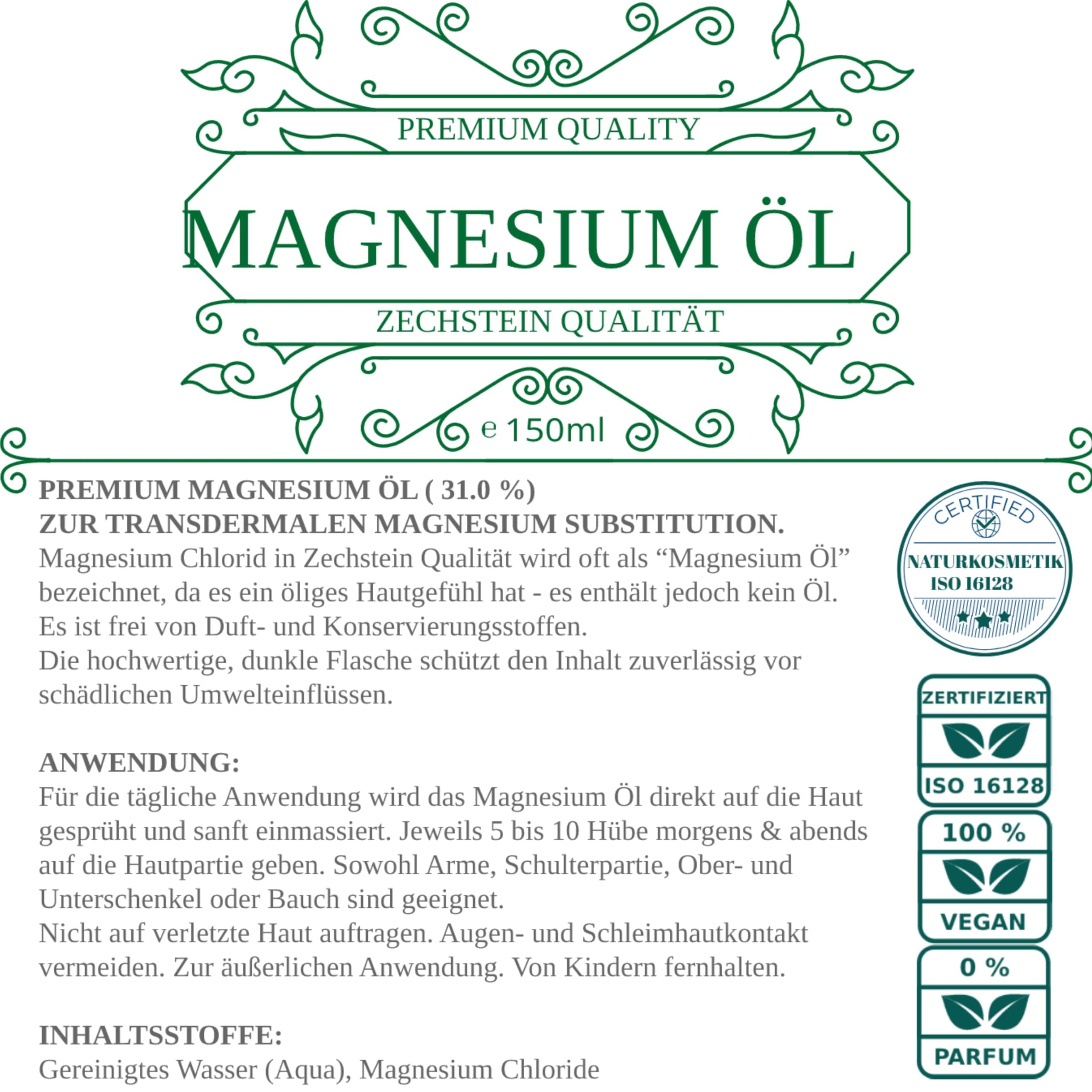 Viroxidin Zechstein Magnesiumöl Spray 150ml - 100% Natürlich & Rein aus deutscher Abfüllung - Magnesiumchlorid Zechstein Magnesium Spray in Premium Qualität - Perfekt für unterwegs