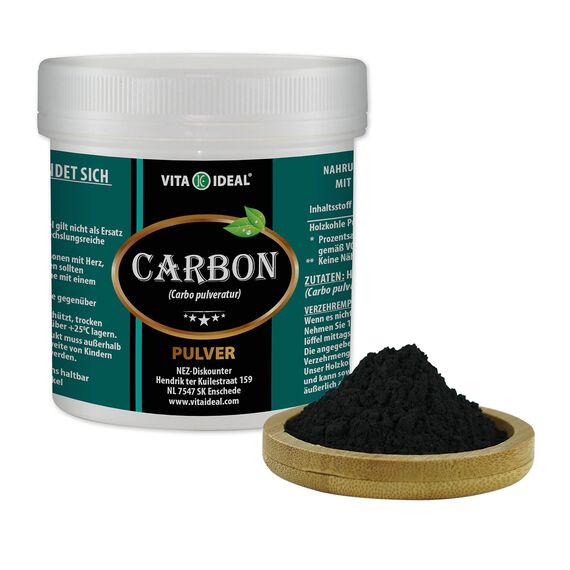Mindestanzahl für die Bestellung von "VITAIDEAL ® Aktive Kohle, Aktivkohle 100% reines pflanzliches PULVER 150g" ist 1.