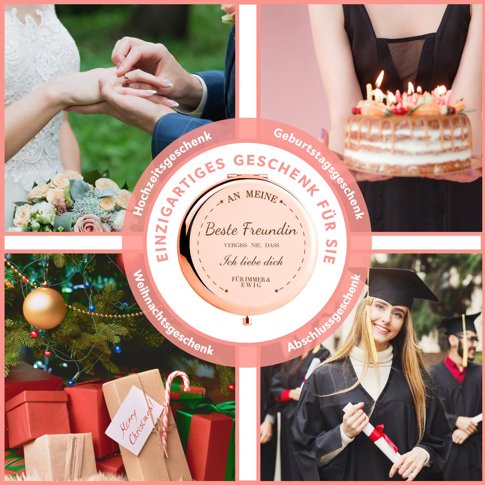 IDEALES GESCHENK FÜR DIE BESTE FREUNDIN: Eleganter Taschenspiegel als persönliches Geburtstagsgeschenk oder liebevolle Aufmerksamkeit für besondere Anlässe.