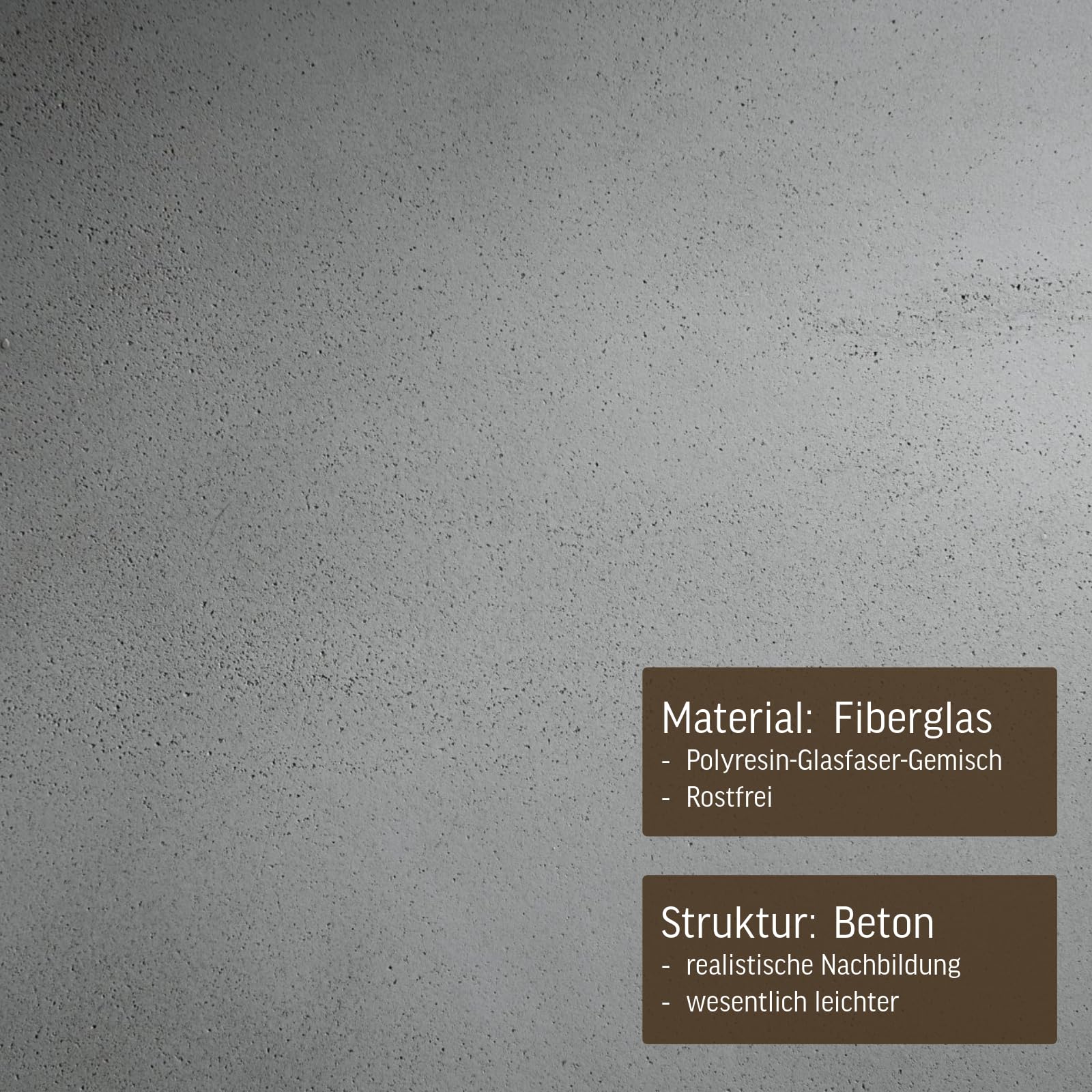 Erleben Sie zeitlose Eleganz und aussergewöhnliche Beständigkeit mit unserem hochwertigen Pflanzkübel aus Fiberglas – einem Material, das nicht nur wetterfest, sondern auch frostsicher ist. Verleihen Sie Ihrem Aussenbereich das ganze Jahr über einen Hauch von Naturschönheit! Unser Pflanzkübel, speziell für den Outdoor-Einsatz konzipiert, verschönert nicht nur Ihre Terrasse, sondern auch Ihren Garten oder Balkon und setzt stilvolle Akzente zu jeder Jahreszeit. Die schlichte Würfel-Form in modernem Beton-Design Grau macht diesen Pflanzkübel nicht nur im Freien, sondern auch in Ihrem Innenbereich zu einem zeitlosen Blickfang. Die dezente Farbgebung fügt sich harmonisch in unterschiedlichste Raumkonzepte ein und verleiht Ihrem Wohnraum eine zeitgemässe Eleganz. Mit einem beeindruckenden Fassungsvermögen von etwa 125 Litern bietet dieser Blumenkübel vielfältige Gestaltungsmöglichkeiten. Platzieren Sie Ihre bevorzugten Pflanzen oder kleine Bäume und schaffen Sie eine individuelle grüne Oase, die Ihren persönlichen Stil widerspiegelt. Die grosszügigen Masse von 50 x 50 x 50 cm (Höhe x Breite x Tiefe) machen diesen Pflanzkübel äusserst vielseitig einsetzbar. Egal, ob als imposantes Einzelstück oder in Kombination mit anderen Elementen – er wird zum zentralen Gestaltungselement in Ihrem Garten oder Wohnraum. Erleben Sie die perfekte Verbindung von Funktionalität und Ästhetik mit unserem Fiberglas-Pflanzkübel. Nicht nur eine Bereicherung für Ihre Pflanzen, sondern auch ein stilvolles Möbelstück, das Ihrem Zuhause eine zeitlose Note verleiht. Für den Aussenbereich empfehlen wir ein paar Löcher in den Boden zu bohren mit einem Steinbohrer.