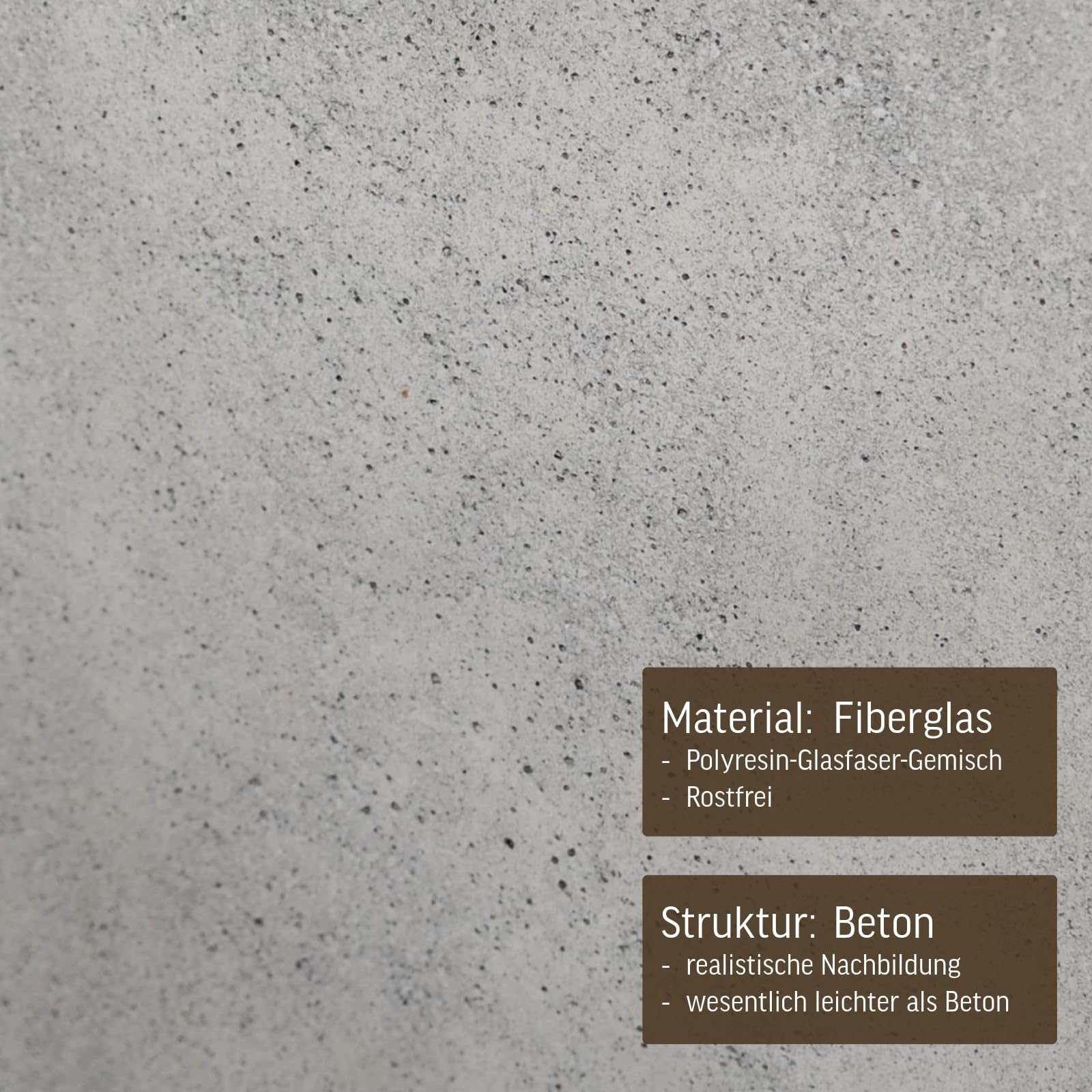 Erleben Sie zeitlose Eleganz und aussergewöhnliche Beständigkeit mit unserem exklusiven Pflanzkübel aus hochwertigem Fiberglas – einem Material, das nicht nur wetterfest, sondern auch frostsicher ist. Geben Sie Ihrem Outdoor-Bereich das ganze Jahr über einen Hauch von Naturschönheit! Unser Pflanzkübel, speziell für den Aussenbereich entworfen, verschönert Ihre Terrasse, Ihren Garten oder Balkon und setzt stilvolle Akzente, die das ganze Jahr über anhalten. Die schlichte Würfel-Form in modernem Beton-Design Grau macht diesen Pflanzkübel nicht nur im Freien, sondern auch im Innenbereich zu einem zeitlosen Blickfang. Die edle Farbgebung fügt sich harmonisch in verschiedene Raumkonzepte ein und verleiht Ihrem Wohnraum eine zeitgemässe Eleganz. Mit einem Fassungsvermögen von etwa 27 Litern bietet dieser Blumenkübel vielfältige Gestaltungsmöglichkeiten. Platzieren Sie Ihre bevorzugten Pflanzen oder Blumen und schaffen Sie eine individuelle grüne Oase, die Ihren persönlichen Stil widerspiegelt. Die kompakten Masse von 30 x 30 x 30 cm (Höhe x Breite x Tiefe) machen diesen Pflanzkübel äusserst vielseitig einsetzbar. Ob als charmantes Einzelstück oder in Kombination mit anderen Elementen – er wird zum zentralen Gestaltungselement in Ihrem Garten oder Wohnraum. Erleben Sie die perfekte Harmonie von Funktionalität und Ästhetik mit unserem Fiberglas-Pflanzkübel. Nicht nur eine Bereicherung für Ihre Pflanzen, sondern auch ein stilvolles Accessoire, das Ihrem Zuhause eine zeitlose Note verleiht. Für den Aussenbereich empfehlen wir ein paar Löcher in den Boden zu bohren mit einem Steinbohrer.