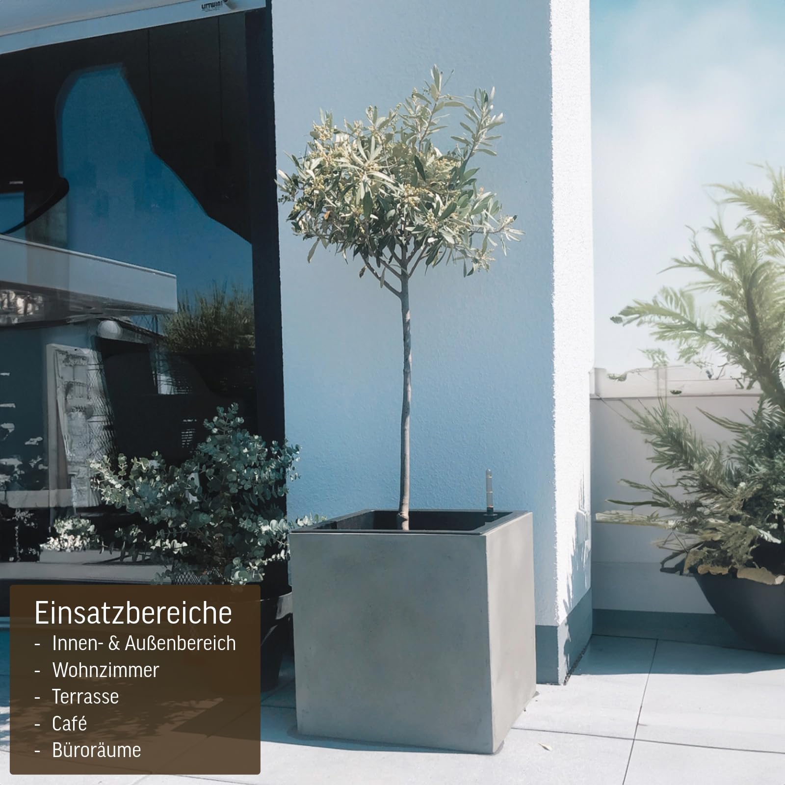 VIVANNO Pflanzkübel Fiberglas Block Frostsicher - 40x40x40 cm - Beton-Design Grau - Blumenkübel Quadratisch für Draussen und Drinnen