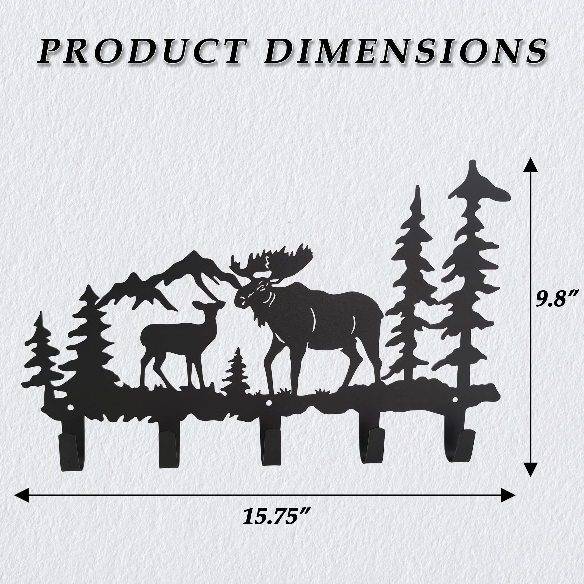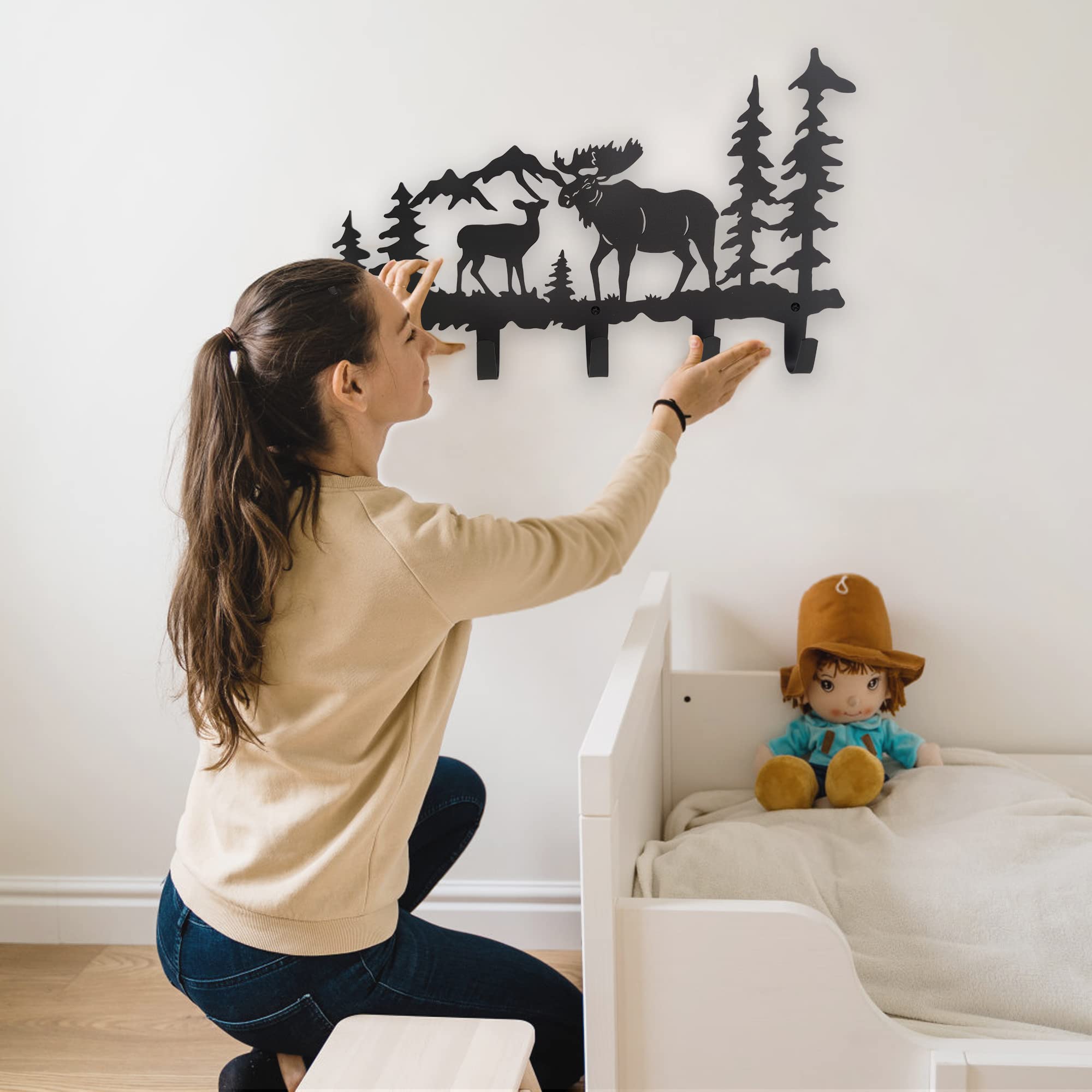 VIVICOMFY Metall-Elch-Haken, Wandkunst-Dekor, zum Aufhängen von Kleidern, Schlüsseln, Hut, Tier-Themen-Haken, hübsche Heimdekoration für Aufbewahrung, Wohnzimmer, Flur, Büro, Schwarz
