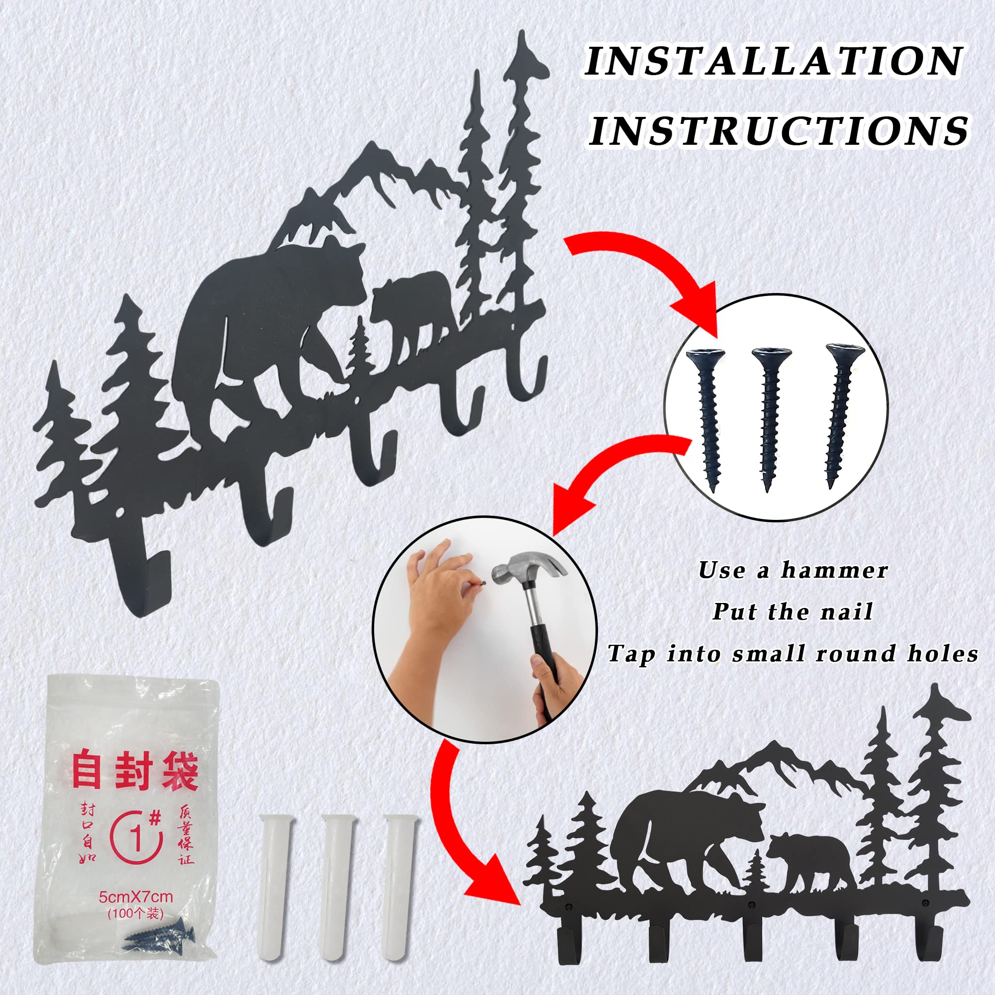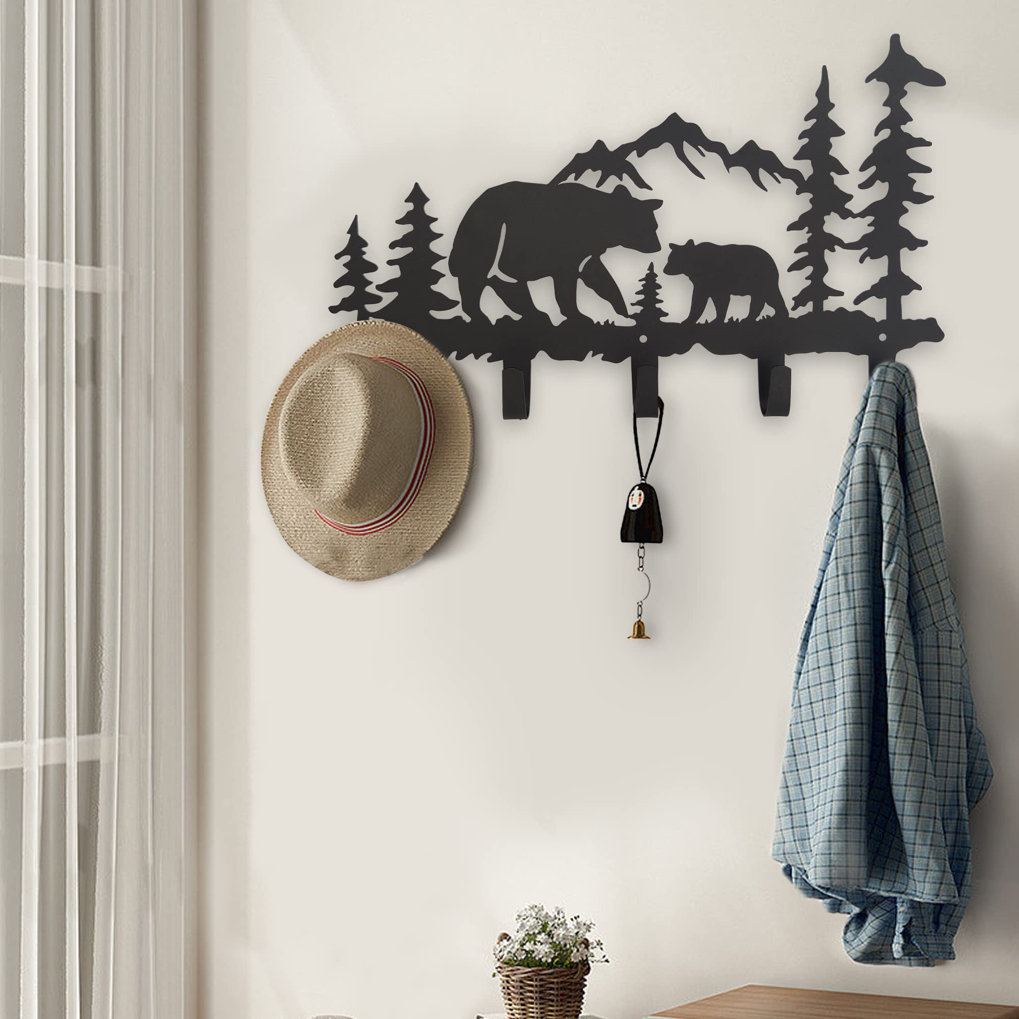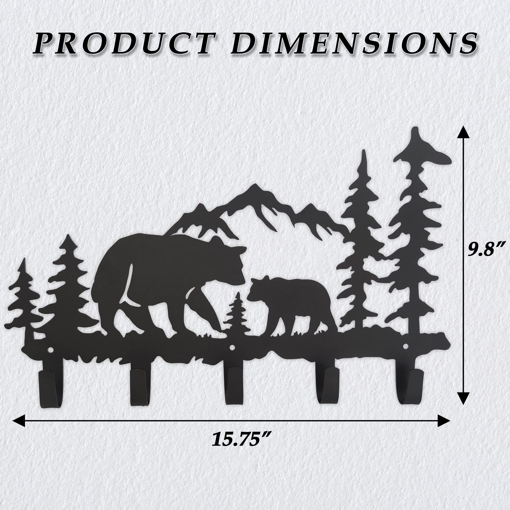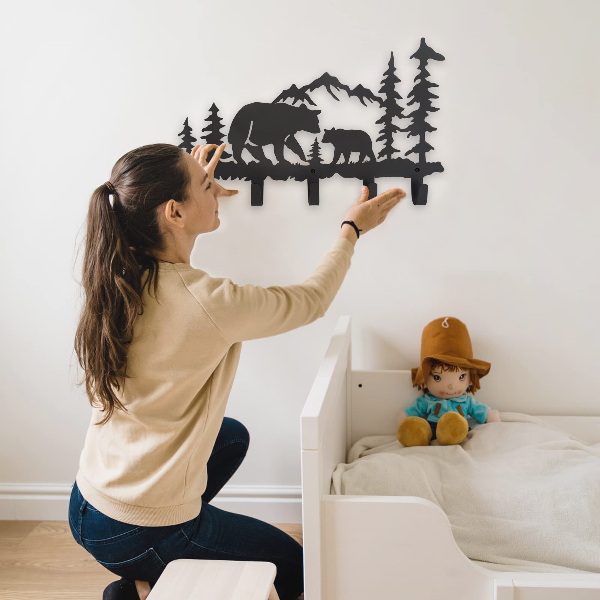 VIVICOMFY Metall-Bär-Haken, Wandkunst-Dekor, Schlüsselhalter, Tier-Themen-Haken, hübsche Heimdekoration für Aufbewahrung, Wohnzimmer, Flur, Büro, Schwarz