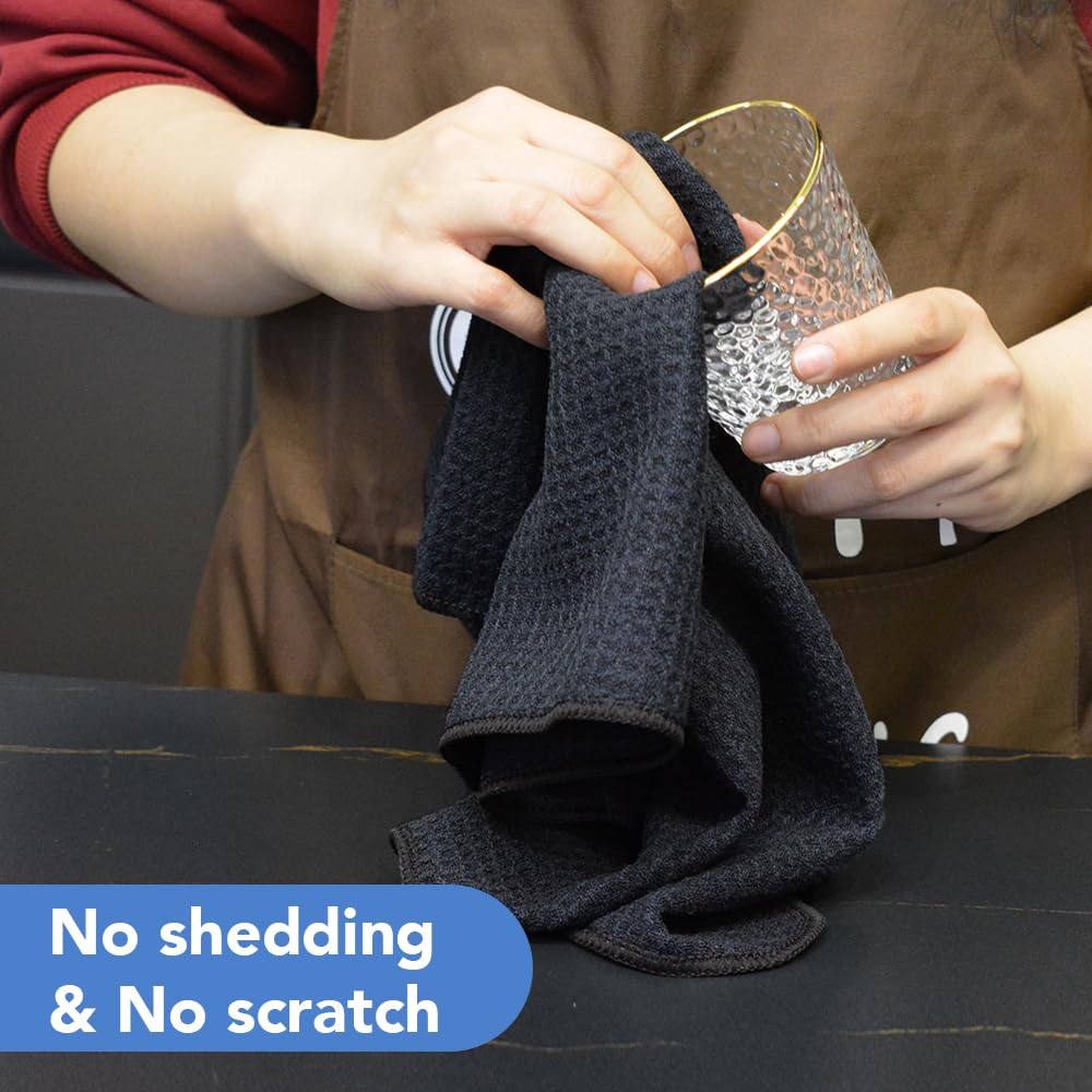 VIVOTE Mikrofasertücher Waffel Geschirrtücher Geschirrtücher für Küche Premium Küchentuch Tücher Hochsaugfähig & Langlebig Fusselfrei Geschirrtuch 50x70cm 4 Stück Schwarz