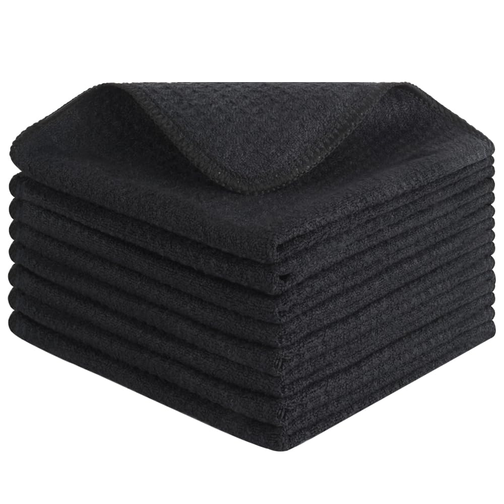 VIVOTE Mikrofasertücher Barista Tuch Schwarz Waffeltuch Spüllappen Waschbar Spültuch für Küche Dicke Haushalts Putzlappen Fusselfrei 30 cm X 30 cm 8 Stück