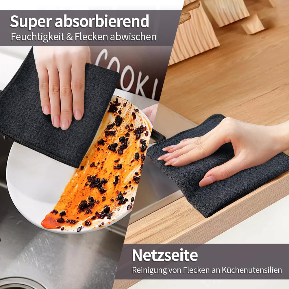 - Super saugfähig: Hochwertige Geschirrtücher entfernen mühelos Wasser, Mikrowellenwasser, Fett und Schmutz von Arbeitsflächen, Tellern, Töpfen und Pfannen und machen Ihre Arbeit leichter und Ihre Küche makellos