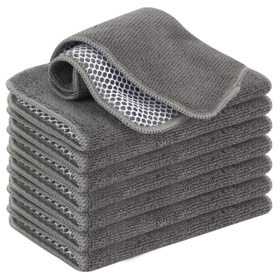 VIVOTE Microfaser Spültücher Spüllappen waschbar Geschirrtücher Mit Poly-Mesh-Scheuerseite Abwaschtücher Küch Teigreinigungstuch Netztuch,8Pack,20cmx20cm (Grau)