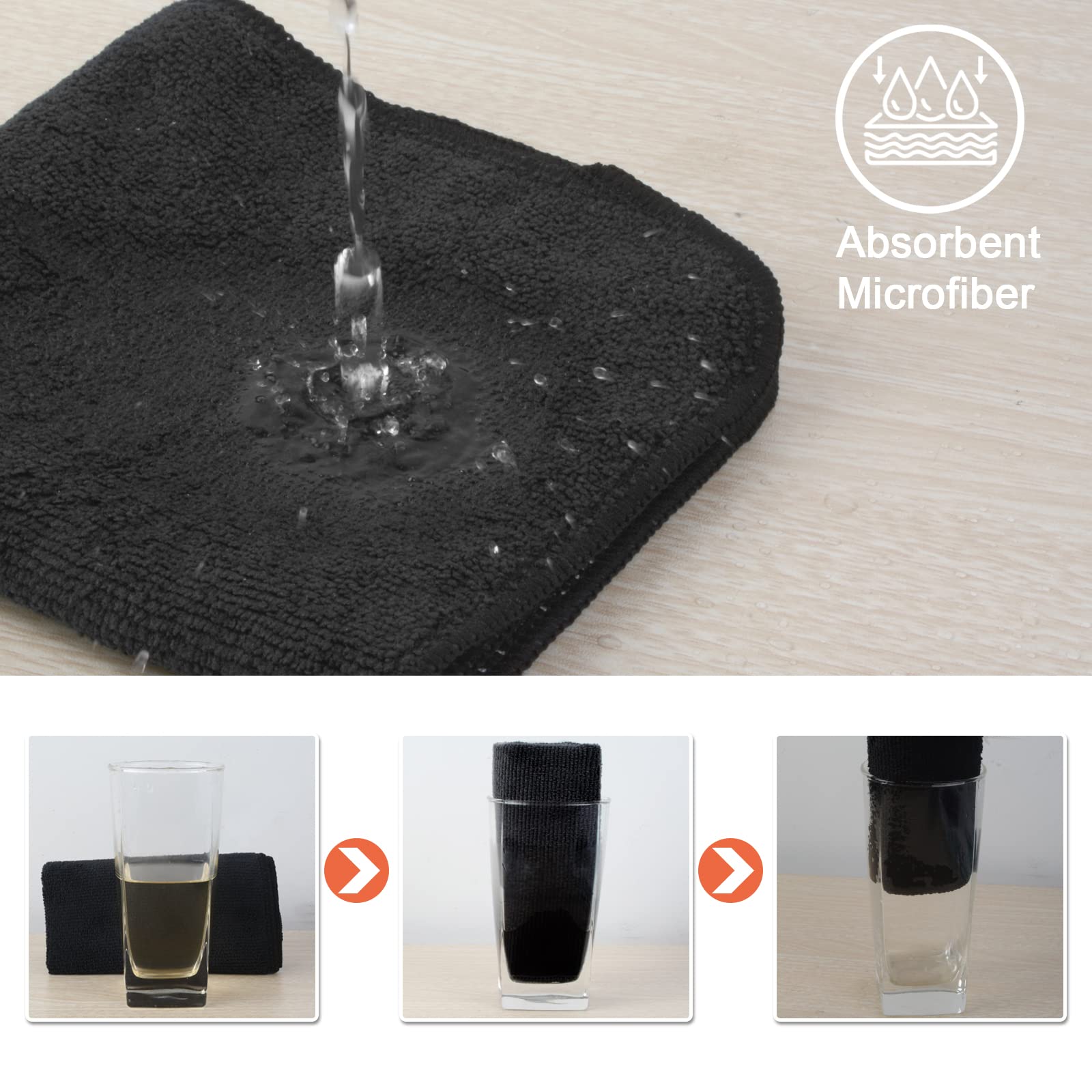 VIVOTE Microfaser Spültücher Spüllappen waschbar Geschirrtücher Mit Poly-Mesh-Scheuerseite Abwaschtücher Küche Haushaltstücher Lappen Küche,8Pack,30cmx30cm (Schwarz)