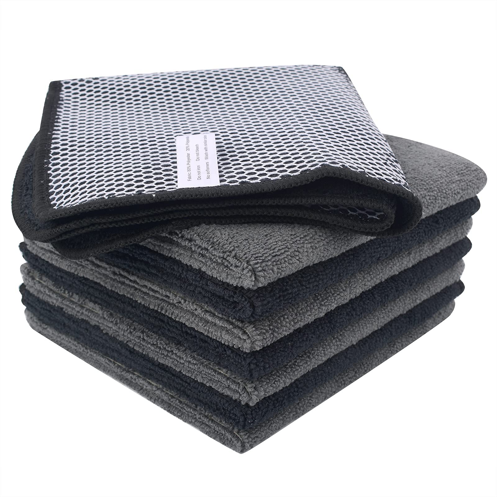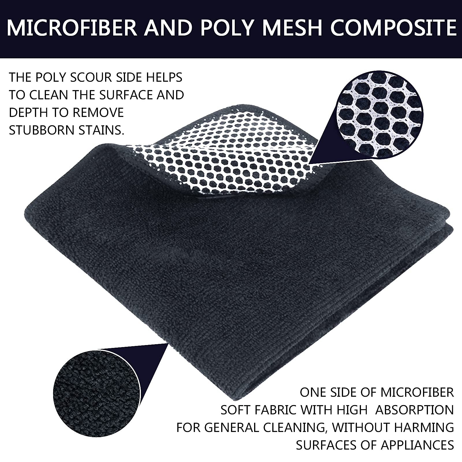 VIVOTE Microfaser Spültücher Spüllappen waschbar Geschirrtücher Mit Poly-Mesh-Scheuerseite Abwaschtücher Küche Haushaltstücher Lappen Küche,8Pack,30cmx30cm(grey4black4)