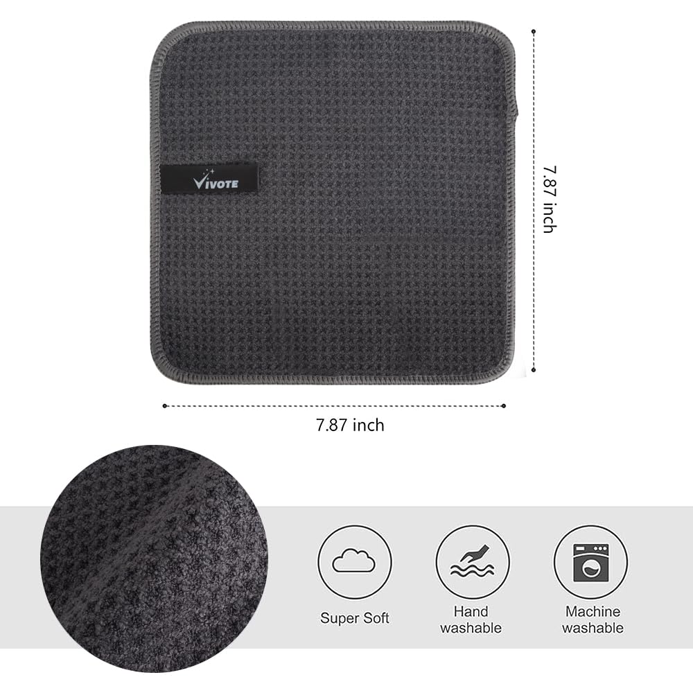 VIVOTE Mikrofasertücher Barista Tuch Grau Waffeltuch Spüllappen Waschbar Spültuch für Küche Dicke Haushalts Putzlappen Fusselfrei 20 cm X 20 cm 12 Stück