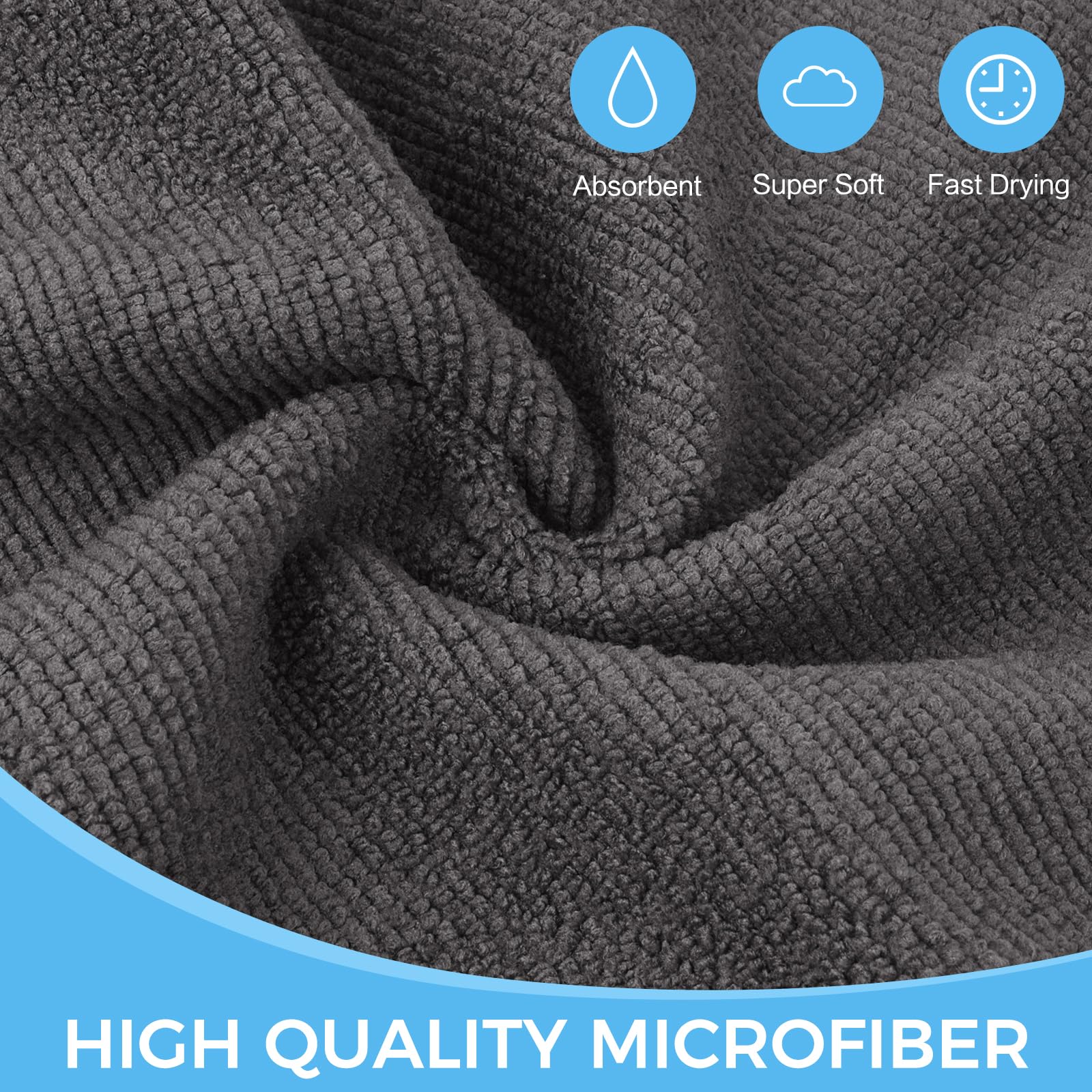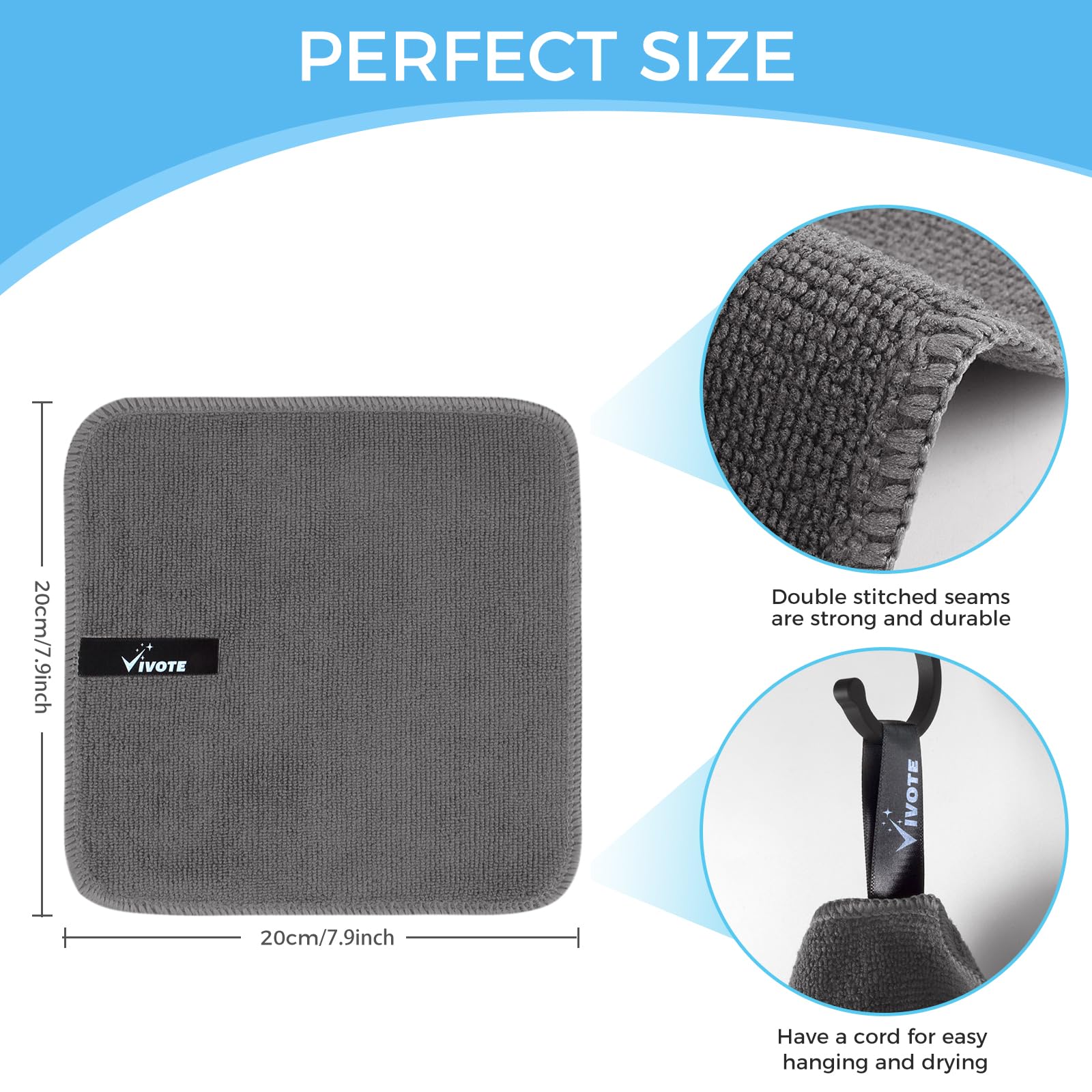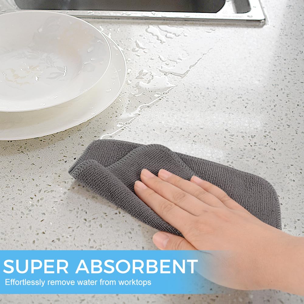 VIVOTE Mikrofasertücher Grau Spüllappen Küchenlappen Super Saugfähig und Dick Haushalts Putzlappen Microfaser Küche Putztücher Mehrzweck Staubwischen 20cm × 20cm 12 Stück 300 g/m²