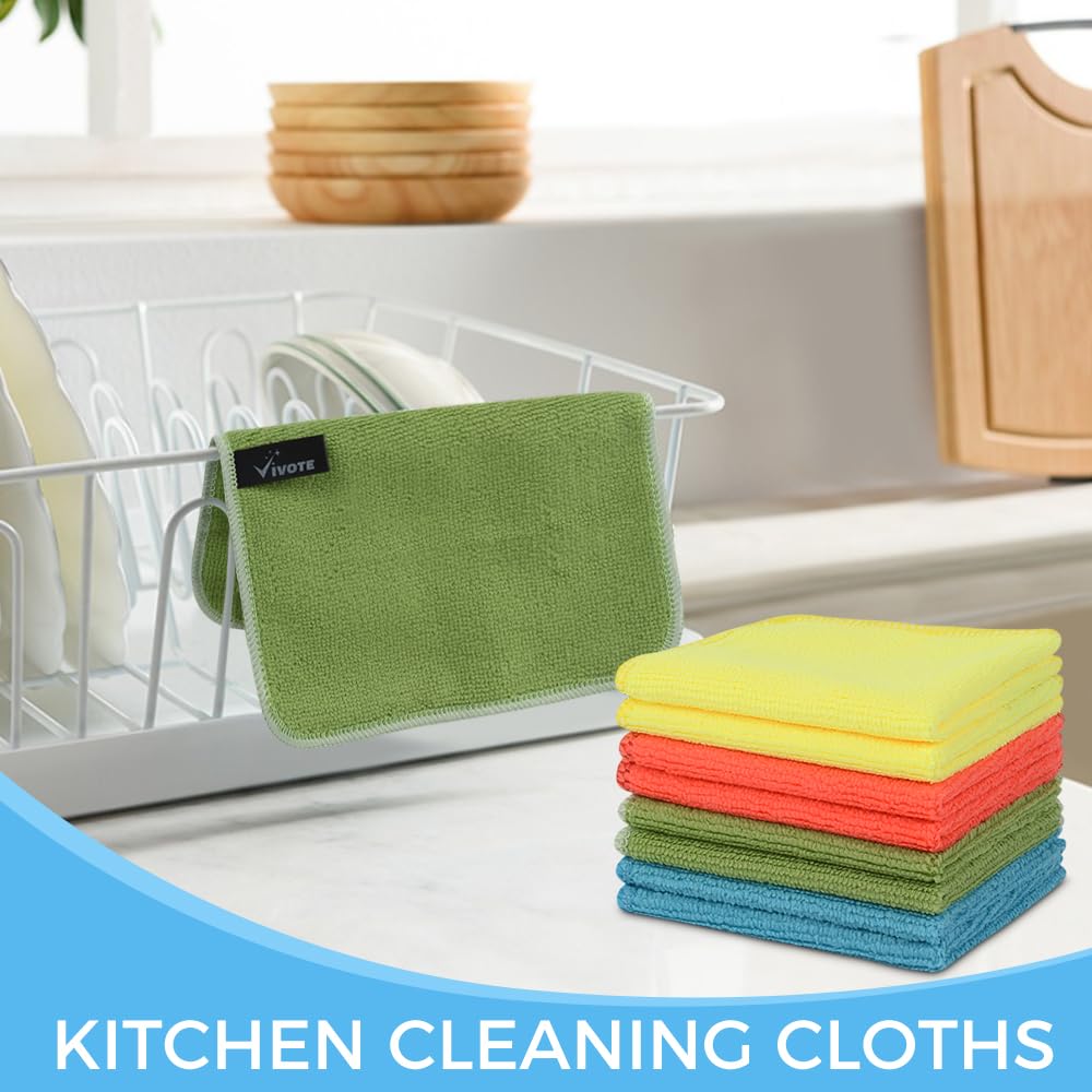 VIVOTE Mikrofasertücher Spüllappen, Mehrfarbige Geschirrtücher, Reinigungstücher, Haushalts Putzlappen microfaser Küche Putztücher Mehrzweck Staubwischen, 20 cm x 20 cm, 9 Stück