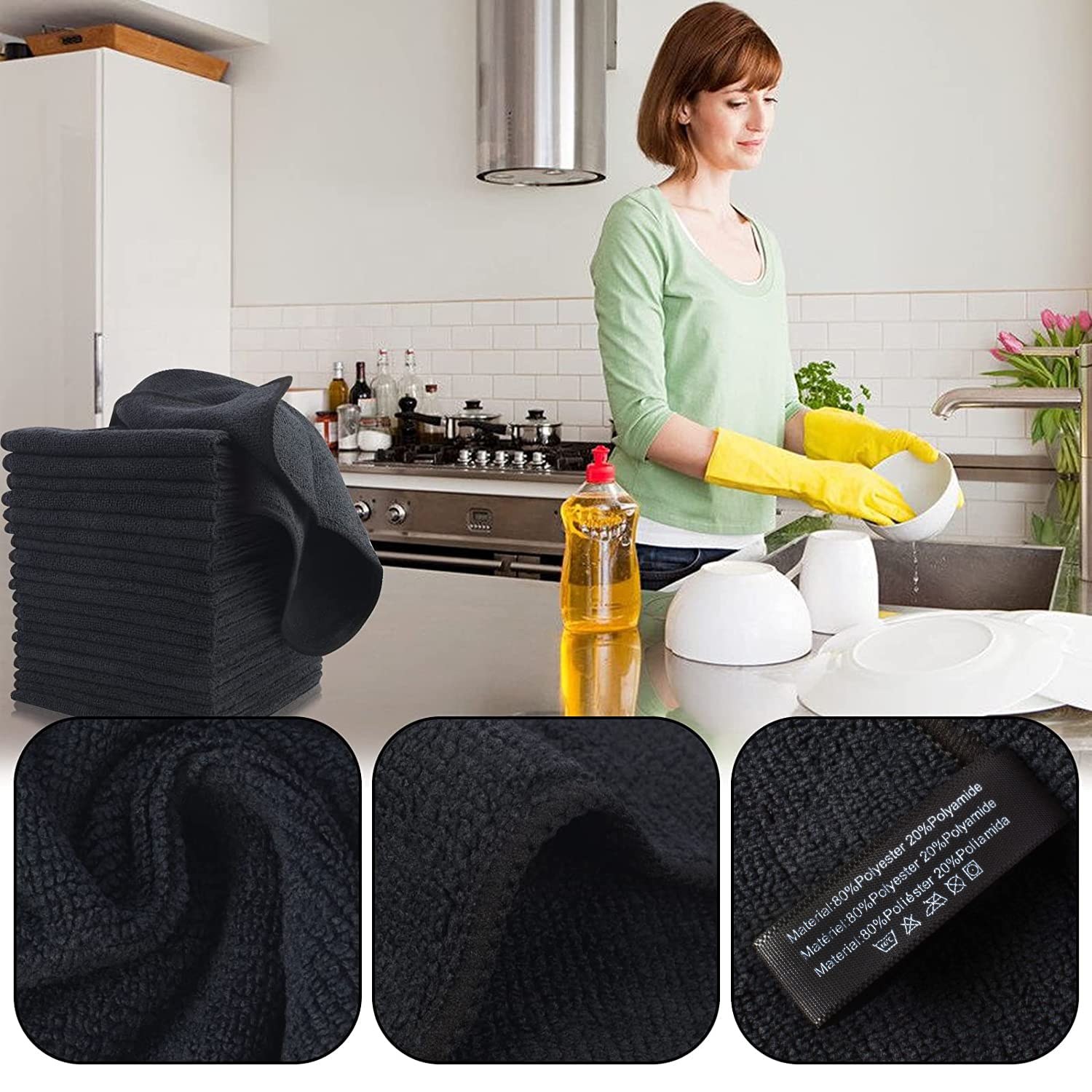 VIVOTE Microfaser-Reinigungstücher Schwarz Küchenlappen Haushalts Putzlappen super saugfähig und dick Spüllappen Mehrzweck Waschlappen Staubwischen 30cm X 30cm 20 Stück