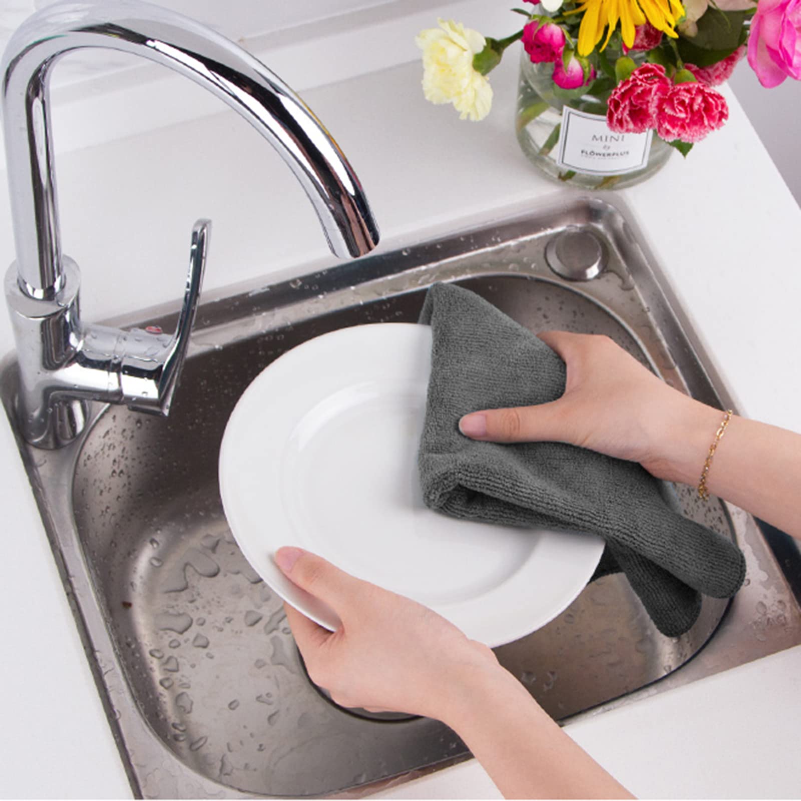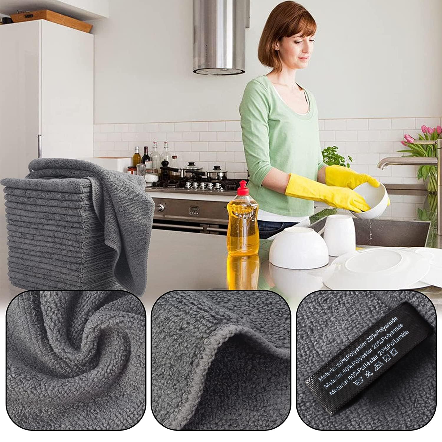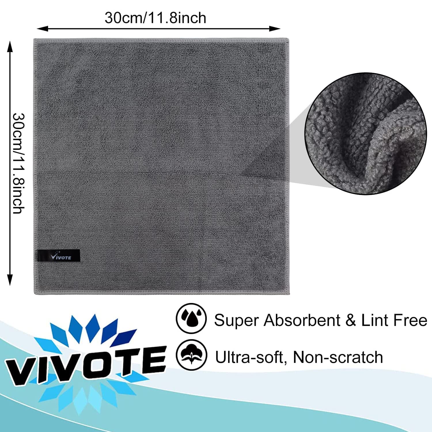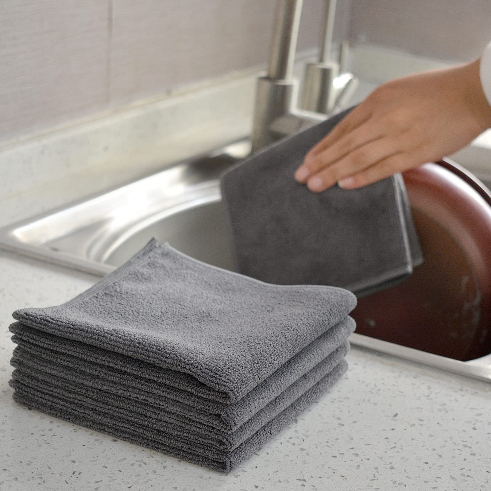 VIVOTE Microfaser-Reinigungstücher Grau Küchenlappen Haushalts Putzlappen super saugfähig und dick Spüllappen Mehrzweck Waschlappen Staubwischen 30cm X 30cm 20 Stück