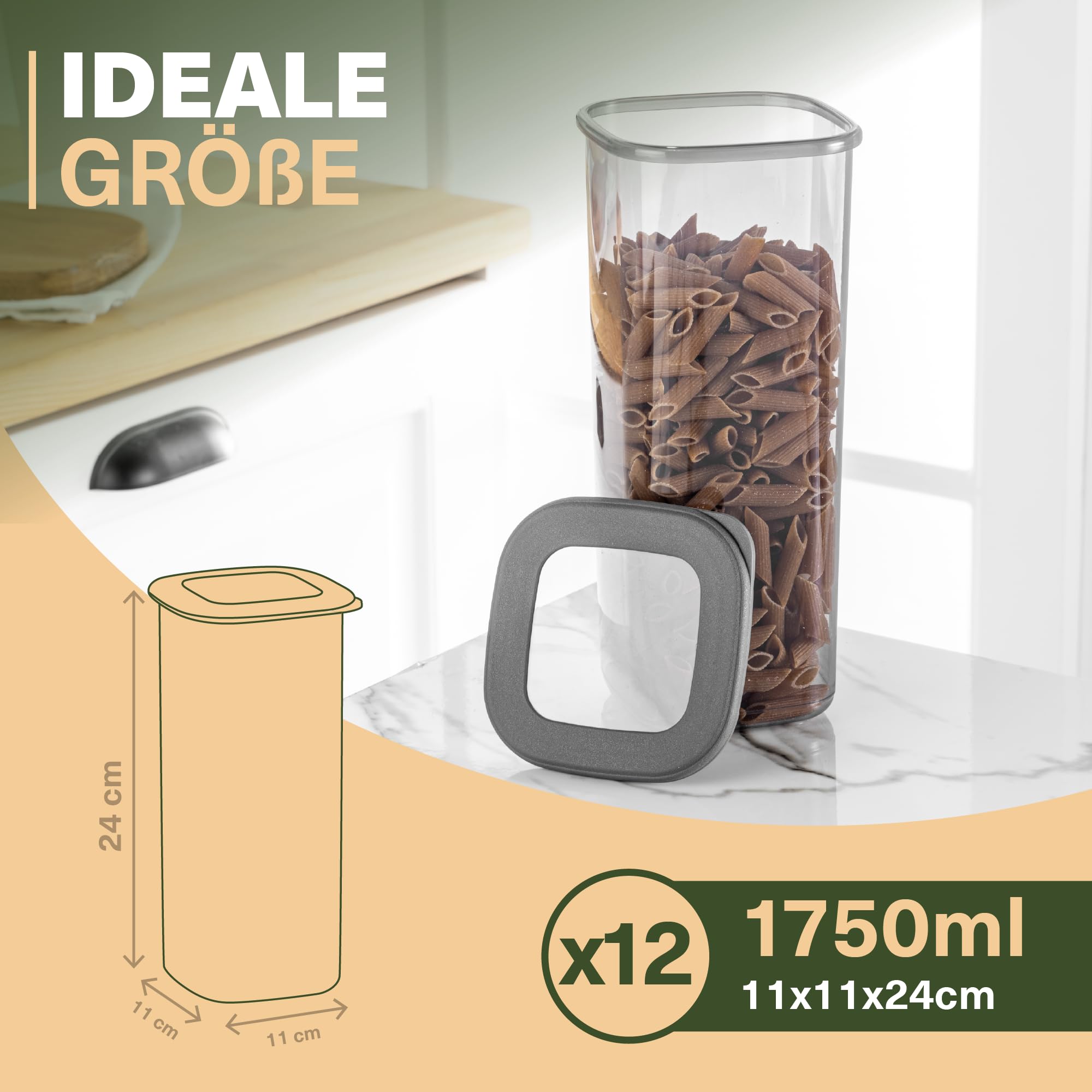 Küche Aufbewahrung & Organisation – mit Vorratsdosen luftdicht! Unsere Vorratsdosen mit Deckel luftdicht sind die perfekte Lösung für eine aufgeräumte Küche! Ob Mehlaufbewahrung, Müsli, Zucker, Reis oder Nudeln – diese Aufbewahrungsdosen mit Deckel halten deine Lebensmittel frisch und schützen sie vor Feuchtigkeit, Schädlingen und Gerüchen. Mit diesem Vorratsdosen-Set bringst du Struktur in deine Vorratshaltung. Die Food Storage Container sind ideal für die Organisation der Küche, egal ob im Schrank, der Speisekammer oder auf der Arbeitsplatte. Deine Vorteile: ✅ Luftdicht & Aromasicher – Die hochwertigen Vorratsbehälter mit Deckel schliessen fest und halten Lebensmittel länger frisch. Perfekt für Müsli-Aufbewahrung, Nudeln, Mehl, Zucker, Salz oder Backpulver. ✅ Platzsparendes Design – Die kitchen storage & organisation Lösung: Stapelbare Dosen mit Deckel, ideal für Schubladen oder Schränke. ✅ Vielseitige Nutzung – Perfekt als Cornflakes-Behälter, Mehlbehälter oder Süssigkeiten-Aufbewahrung. Auch für Gewürze, Kaffee, Tee oder Trockenfrüchte ideal. ✅ Robust & BPA-frei – Lebensmittelechte Plastikdosen mit Deckel, frei von Schadstoffen und sicher für deine Familie. ✅ Leichte Reinigung & Pflege – Die Frischhaltedosen mit Deckel sind spülmaschinenfest und für den Kühlschrank geeignet. Perfekt für: ✔ Organisation Küche & Vorratshaltung ✔ Pantry Organizer & Ordnungssystem Küche ✔ Küchenaufbewahrung in der ersten Wohnung ✔ Erste Wohnung - Küchenzubehör & Haushalt Lieferumfang: ✔ Vorratsgläser mit Deckel luftdicht (verschiedene Grössen) ✔ Plastikdosen mit Deckel für Essen ✔ Praktische Beschriftungsetiketten für deine Lebensmittelaufbewahrung Bringe mehr Ordnung und Frische in deine Küche – mit unseren Vorratsdosen-Sets!