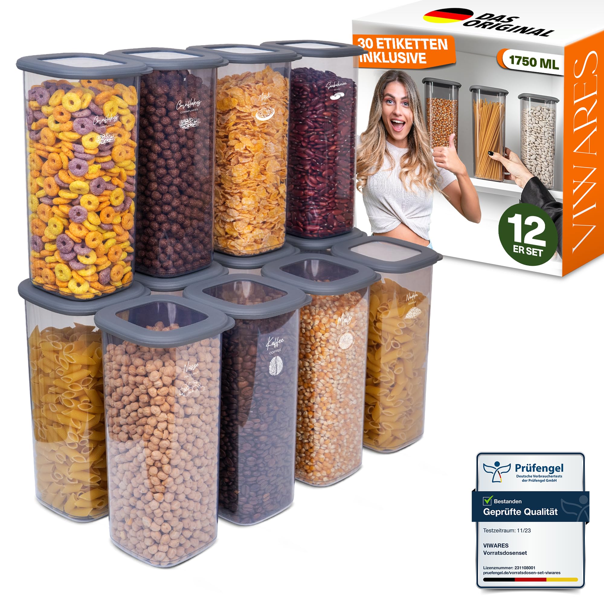 Viwares Vorratsdosen mit Deckel Luftdicht, 12er Vorratsbehälter Set BPA-Frei, Vorratsdose zur Müsli Mehl Aufbewahrung Küche, Praktische Organizer Küche, Frischhaltedosen für Lebensmittelaufbewahrung