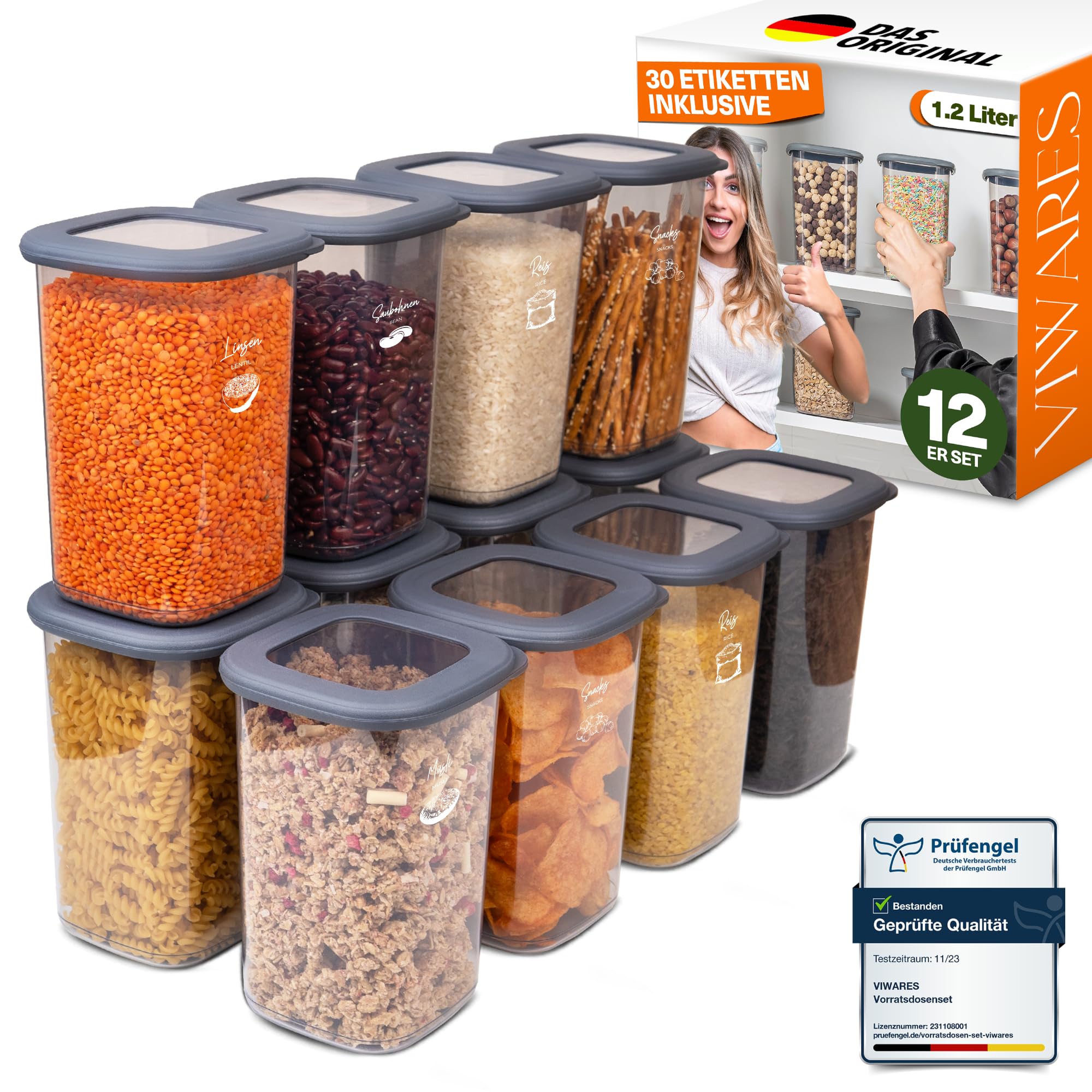 Viwares Vorratsdosen mit Deckel Luftdicht, 12er Vorratsbehälter Set BPA-Frei, Vorratsdose zur Müsli Mehl Aufbewahrung Küche, Praktische Organizer Küche, Frischhaltedosen für Lebensmittelaufbewahrung