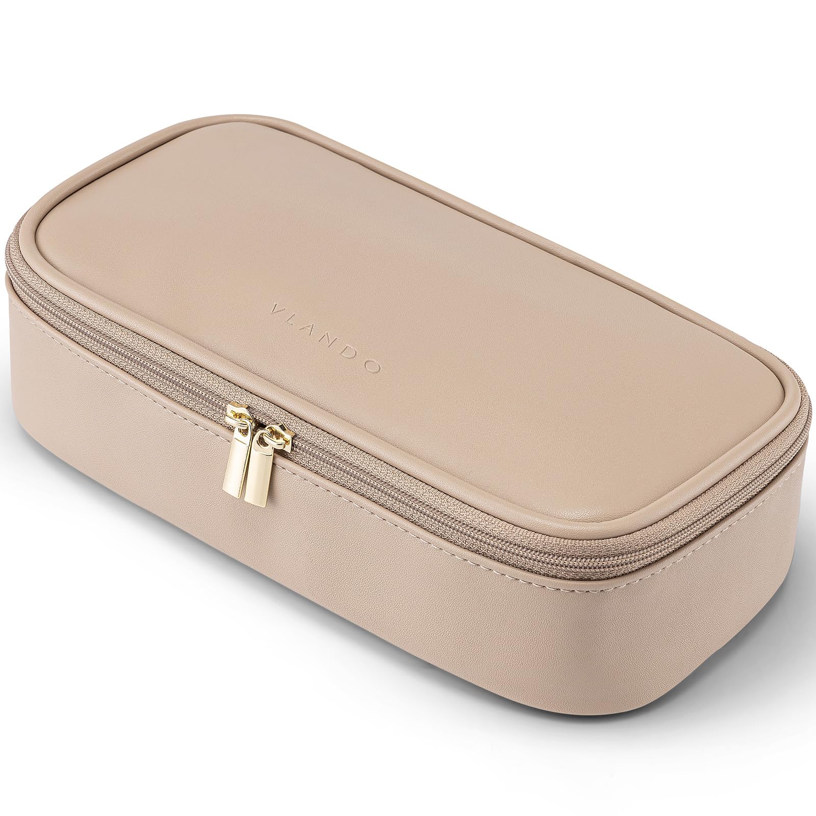 Die Vlando Reise Kosmetiktasche ist eine elegante und praktische Loesung zur Aufbewahrung von Make-up, Kosmetik und Pflegeartikeln unterwegs. Diese kleine Make-up Tasche fuer Damen ueberzeugt durch ihr hochwertiges Design, ihre Funktionalitaet und das edle milchkaffeefarbene Erscheinungsbild. Sie eignet sich ideal fuer Reisen, den Alltag oder als stilvolle Geschenkidee.